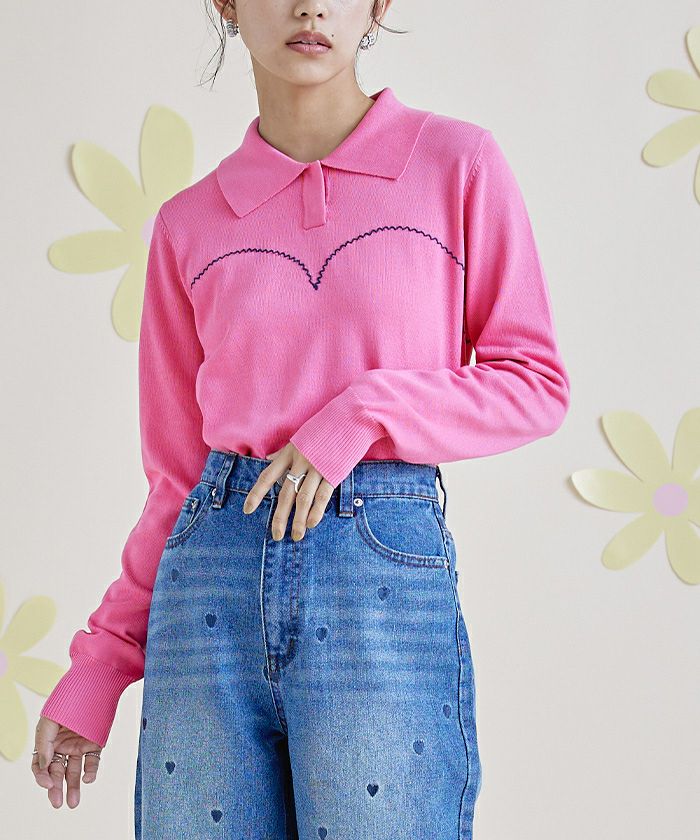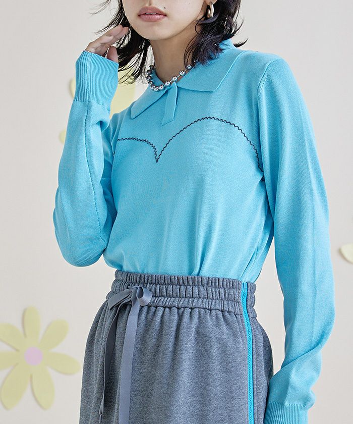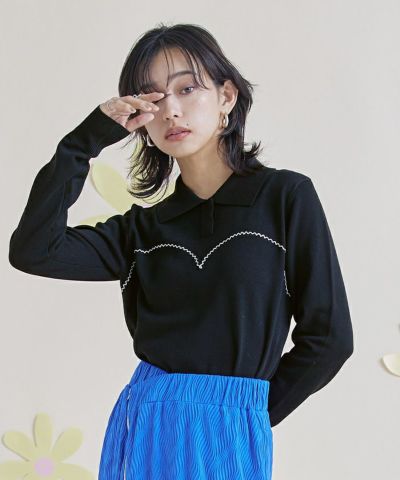 ジグザグステッチポロニット【miette ミエット】【メール便可/100】