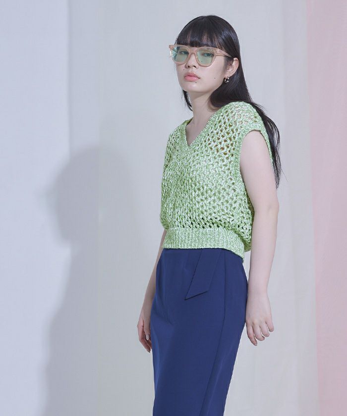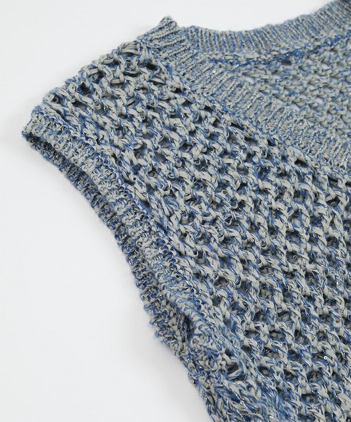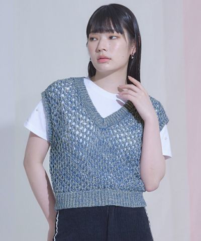 キラキラメッシュ編みベスト【miette ミエット】