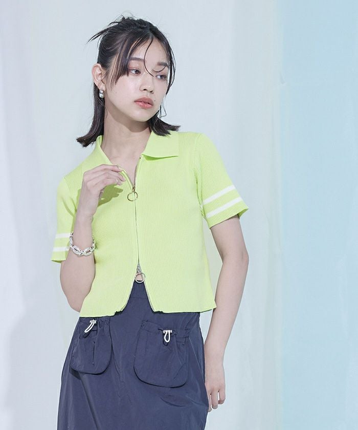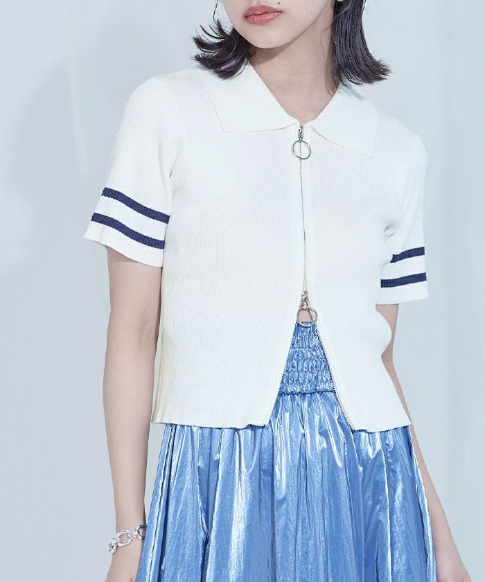 ダブルジップ半袖トップス【miette ミエット】【メール便可/100】