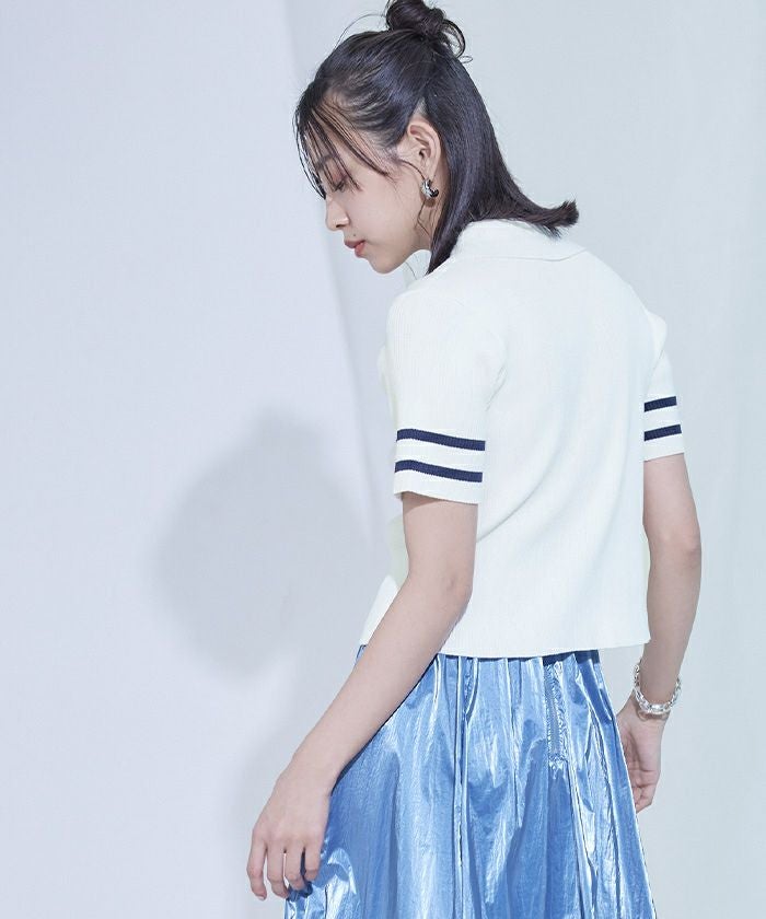 ・袖口の配色がポイントの半袖トップス。