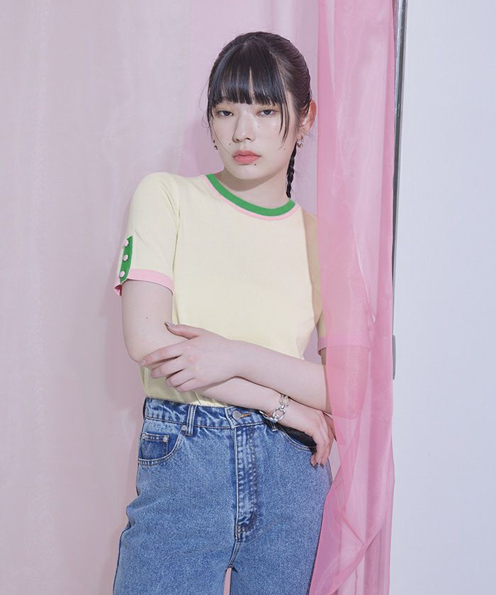 袖口ボタンマルチカラートップス【miette ミエット】【メール便可/90】