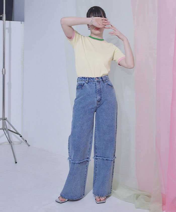 ・マルチな配色がポイントの半袖トップス。