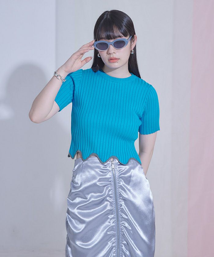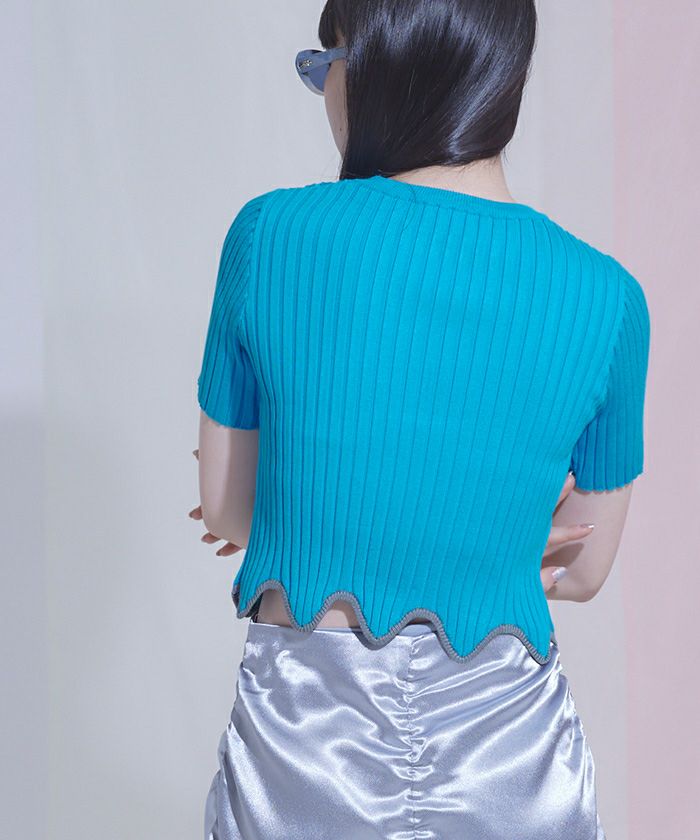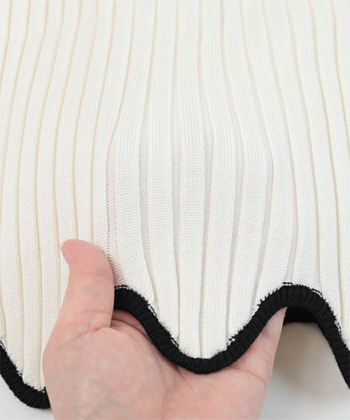 ・裾のウェーブラインがアクセントになったリブトップス。