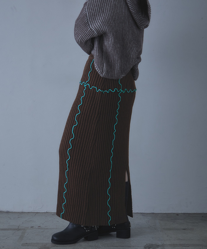 【miette】 プレーティング配色リブフード付きニット【miette ミエット】