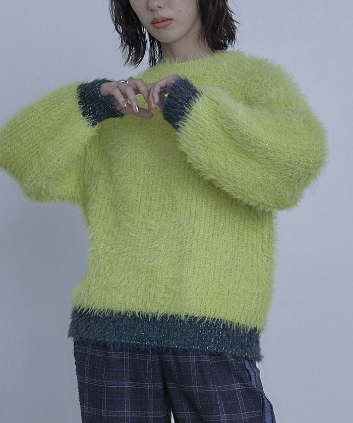 ・シャギー糸とラメ糸を使ったトレンド感満載のニット