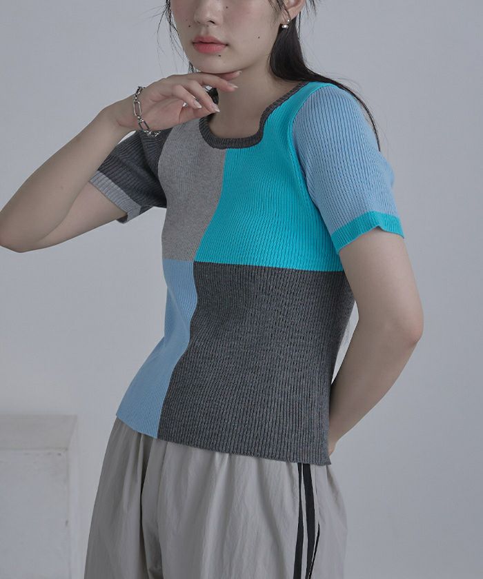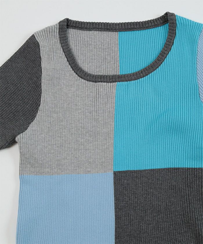 カラーパネル半袖リブトップス【miette ミエット】【メール便可/80】