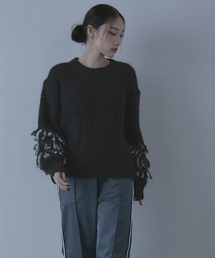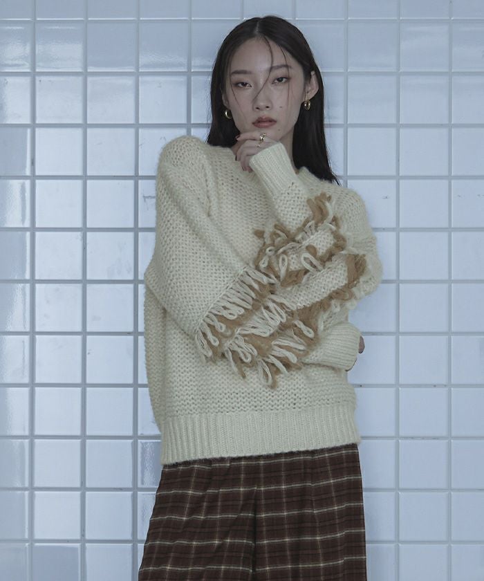 ・2色のループがポイントのニット