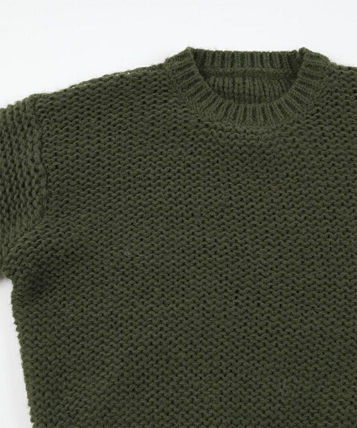 ・ざっくりとしたローゲージの編み地がコーディネートに抜け感をプラス