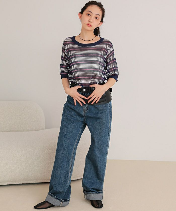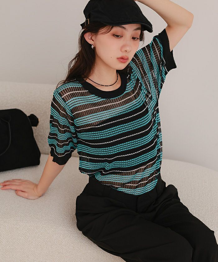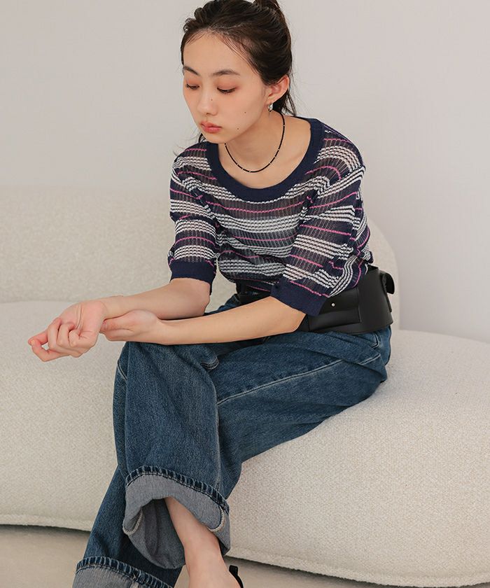 ・程良い透け感がおしゃれな1枚。シアーなので抜け感があり、普段ボーダー柄を着慣れない方にもおすすめです◎