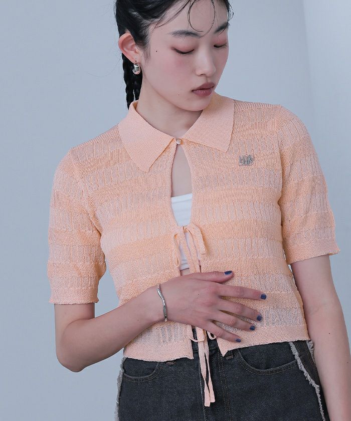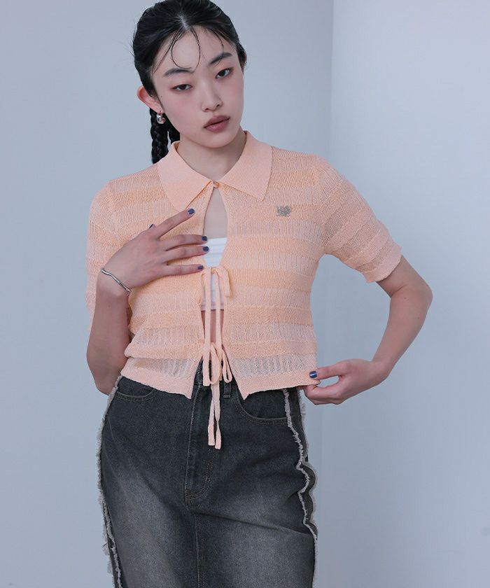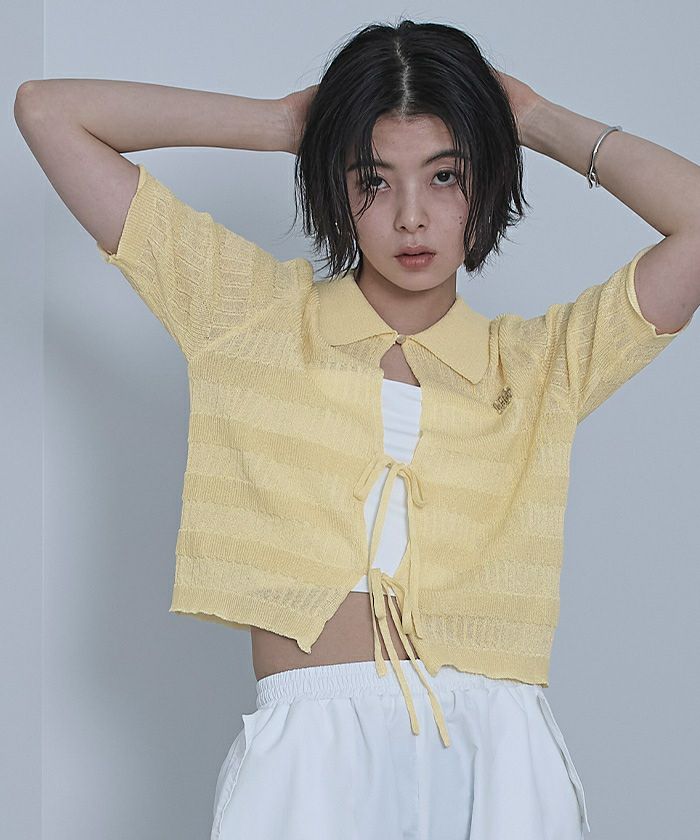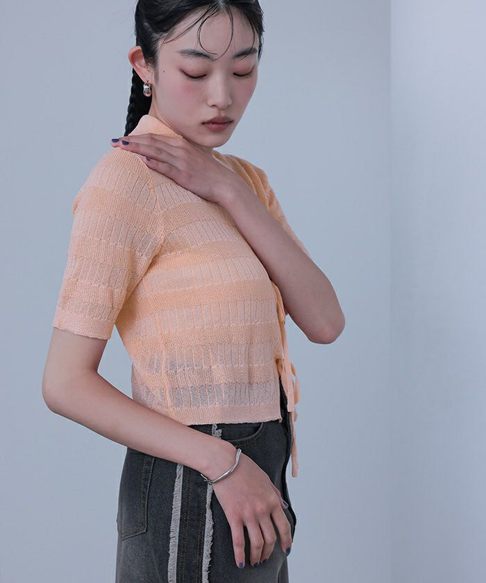 ・フロントリボンデザインでトレンド感のあるニットトップス
