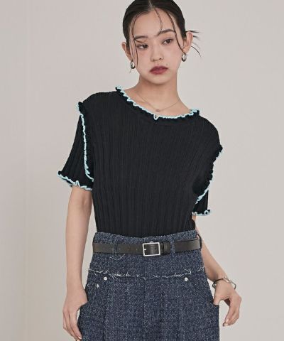 配色ラインランダムリブトップス【miette ミエット】