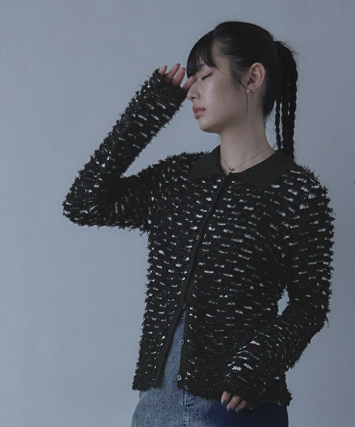 襟付きフリンジニット【miette ミエット】