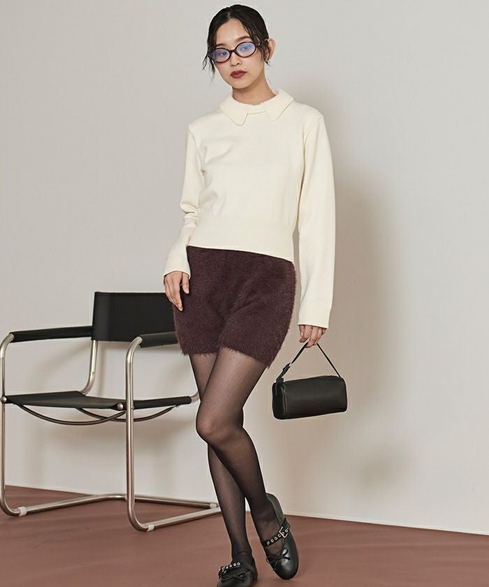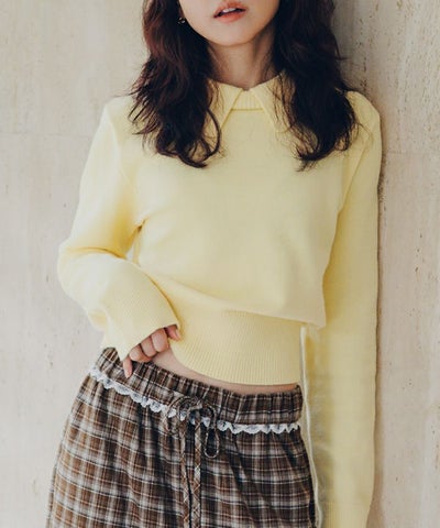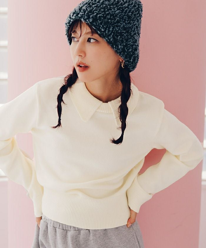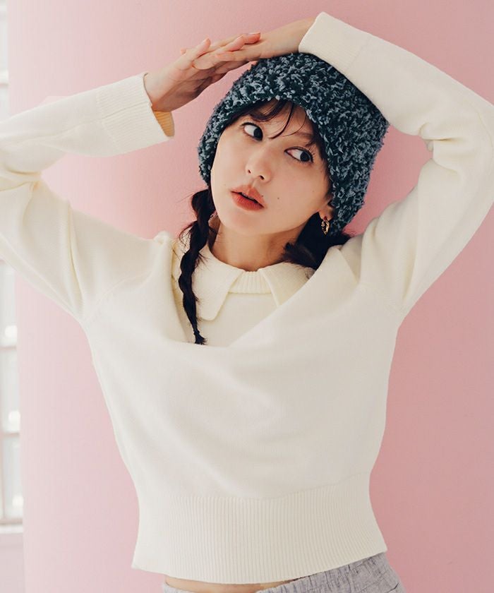 ・コンパクトな丈感で、一枚で決まる主役ニット