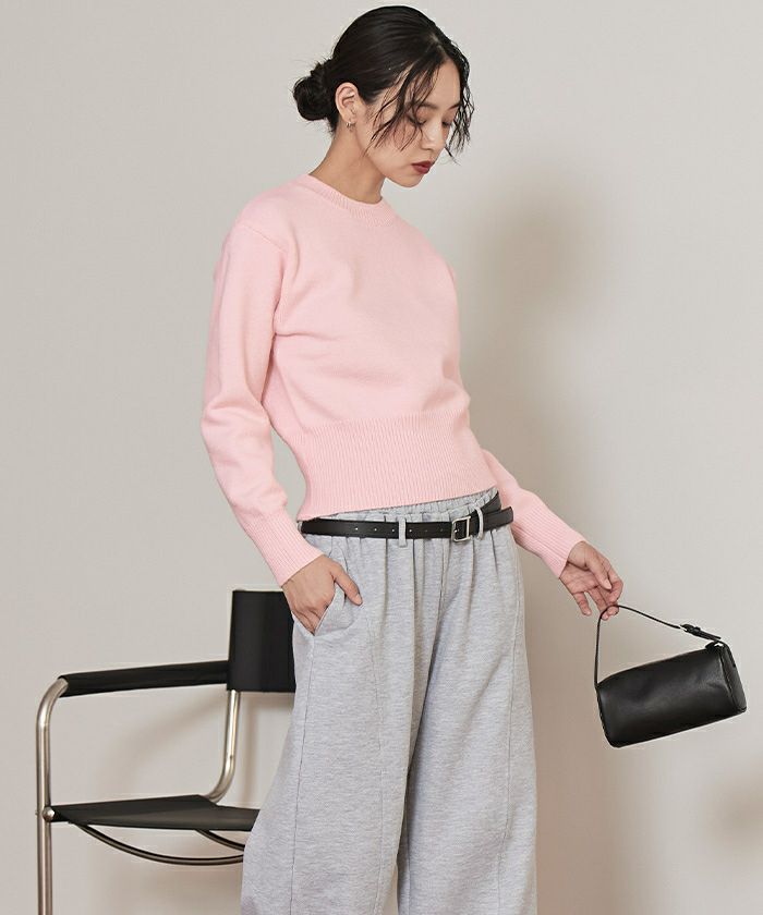 ・左脇に同色クリアボタンがポイントのニットトップス