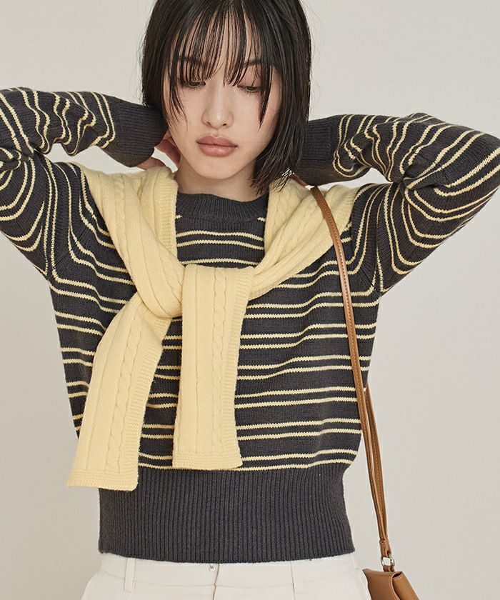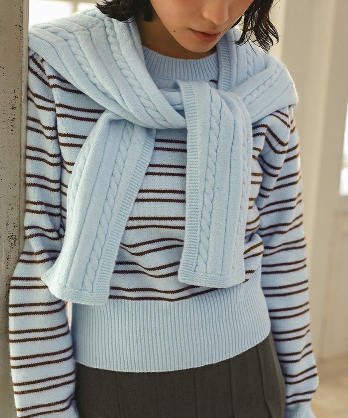 ショール付きマルチボーダーニット【miette ミエット】