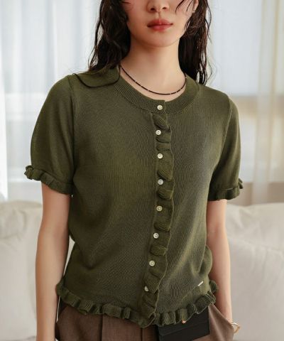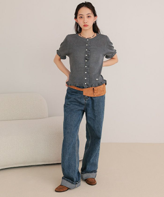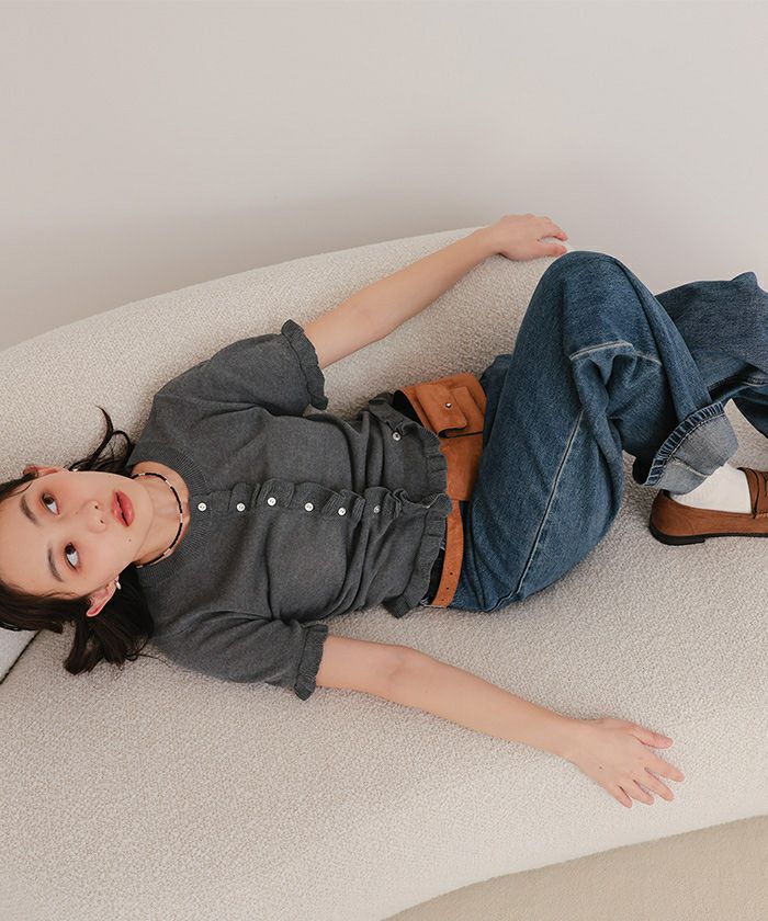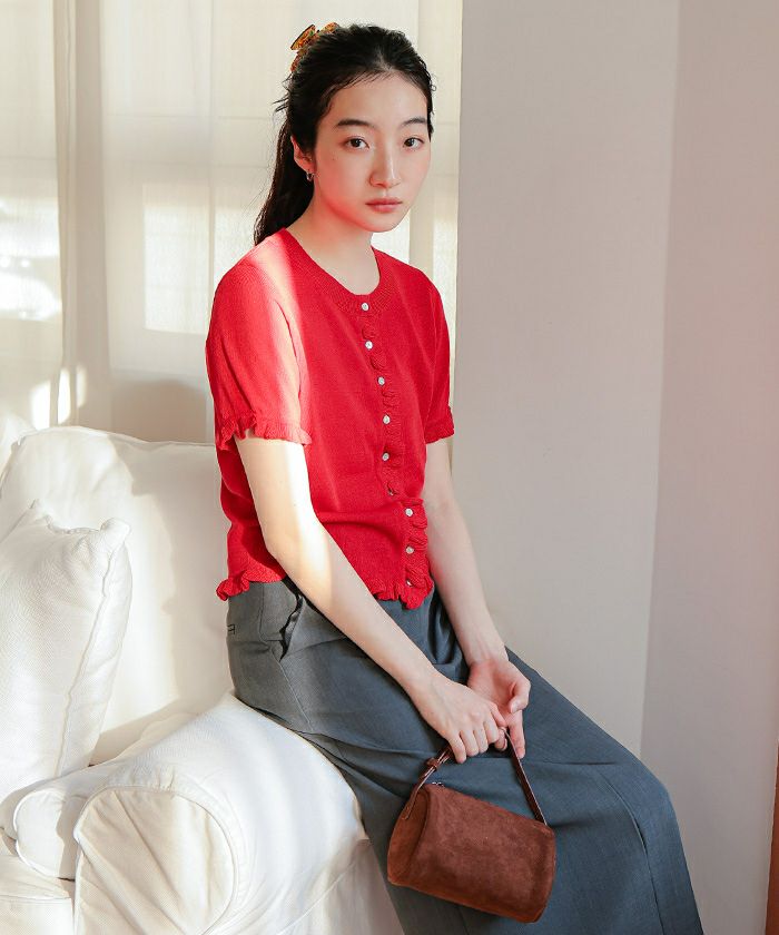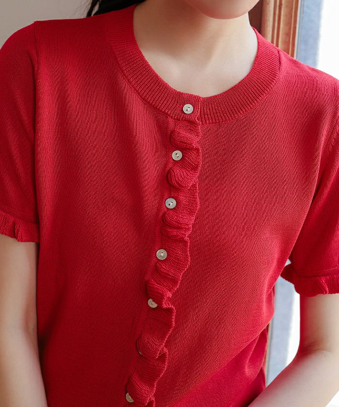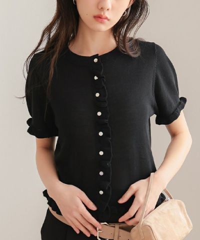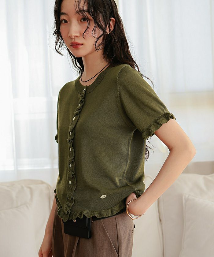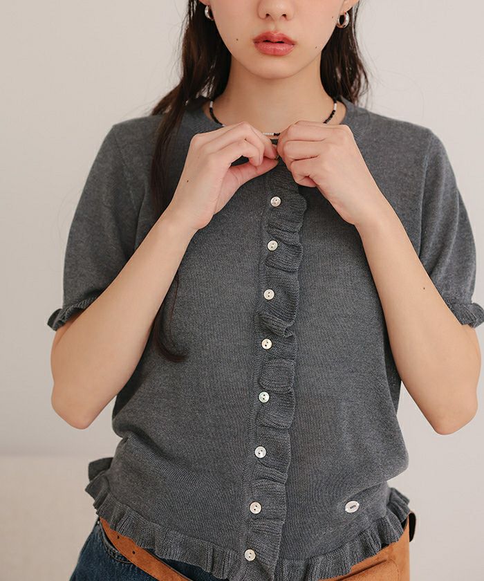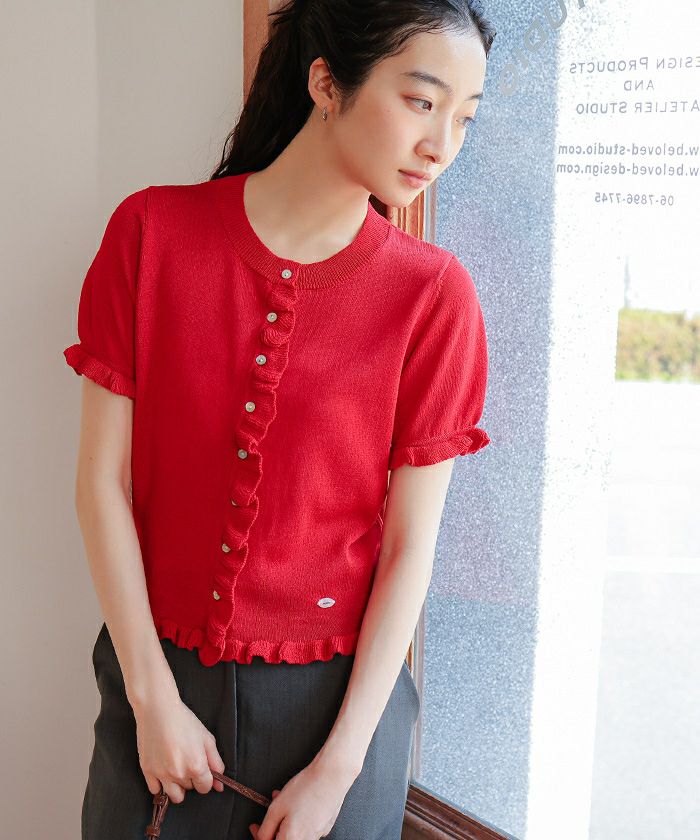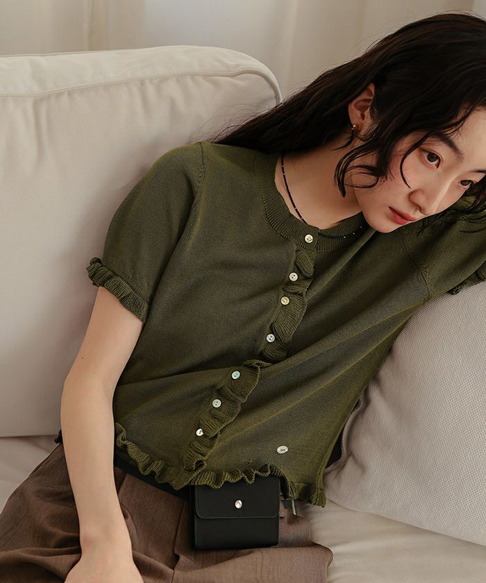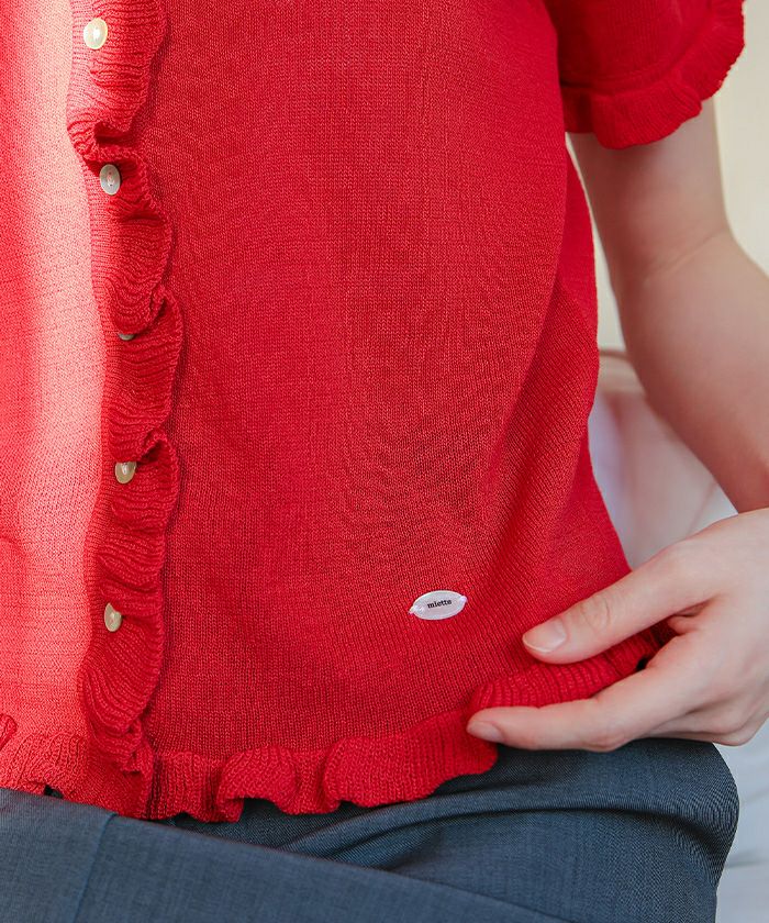 フリルデザイン半袖ニットカーディガン【miette ミエット】【メール便可/100】