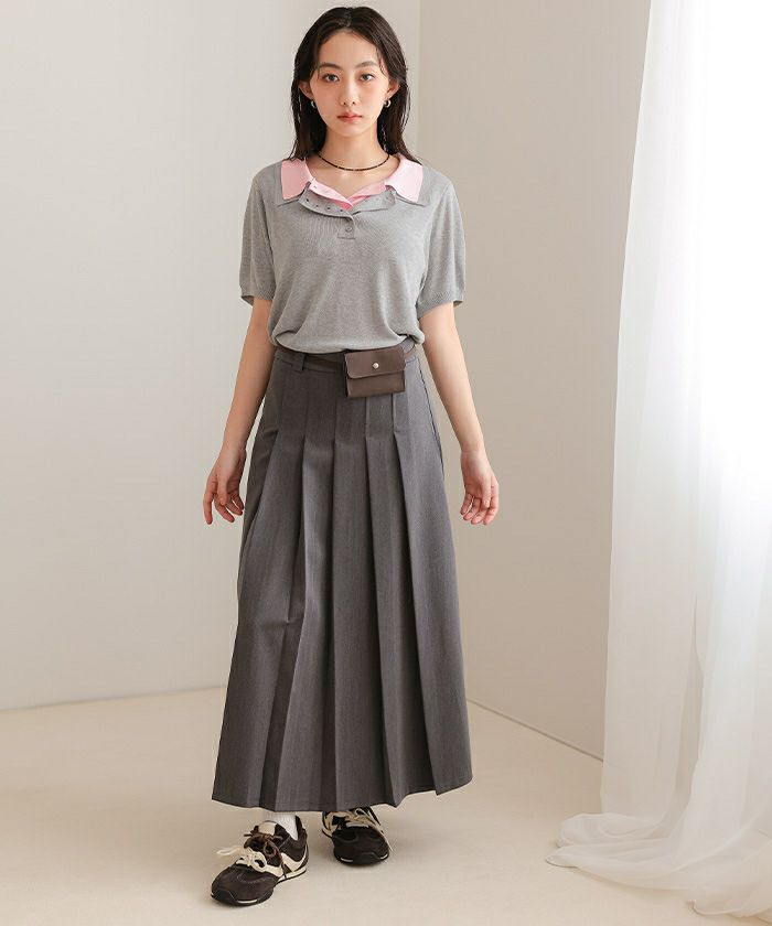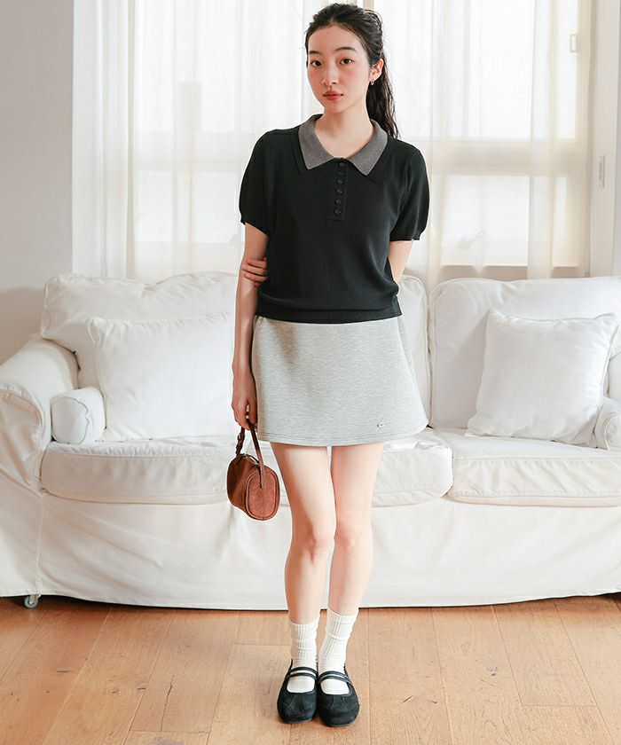 レイヤード風半袖ポロニット【miette ミエット】【メール便可/100】