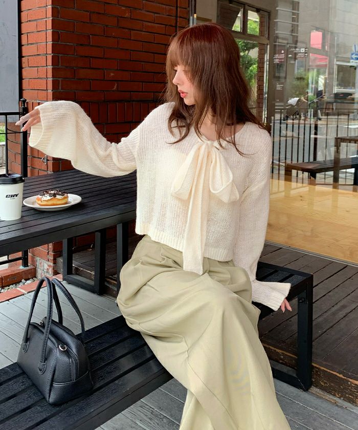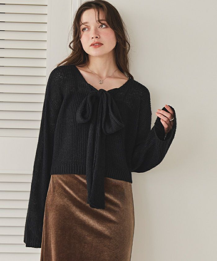 他の画像を見る ■【いつきさん25A/Wコラボ】【IGTV】 【titivate】【期間限定★SALE】 前後2wayリボンデザインシアーローゲージニット 通常価格 ¥ 4,389 価格 ¥ 2,194 税込 お気に入りに登録する