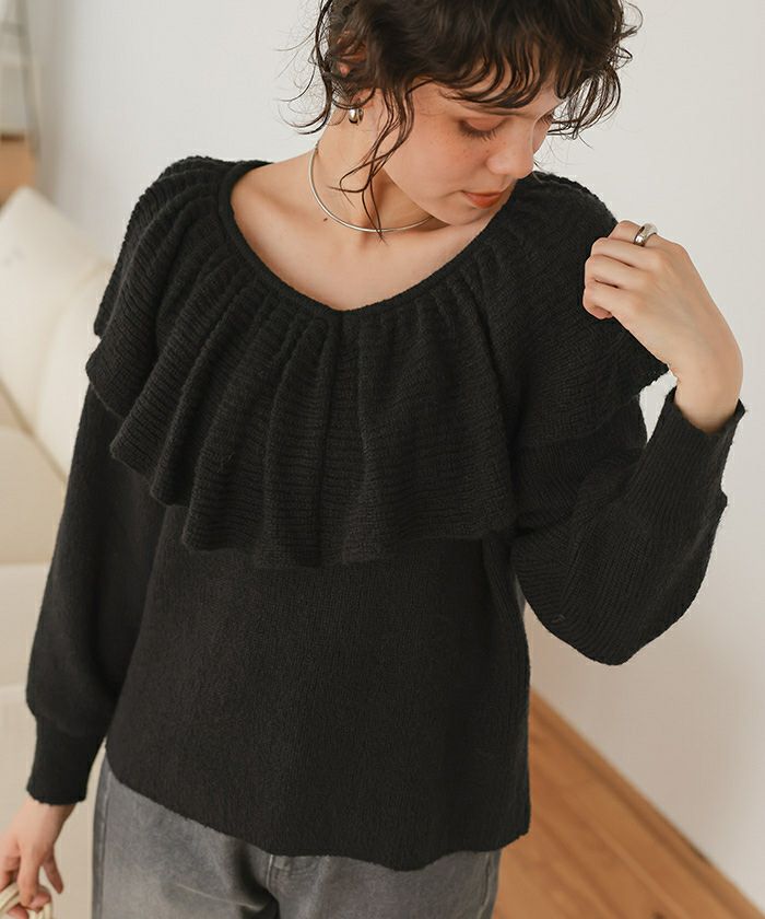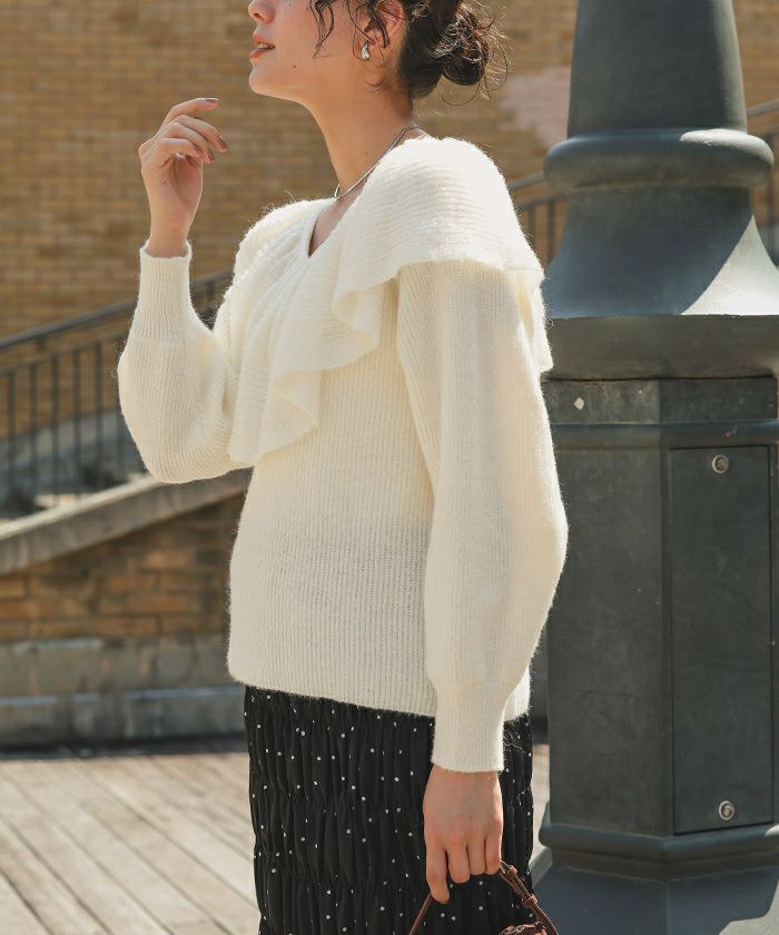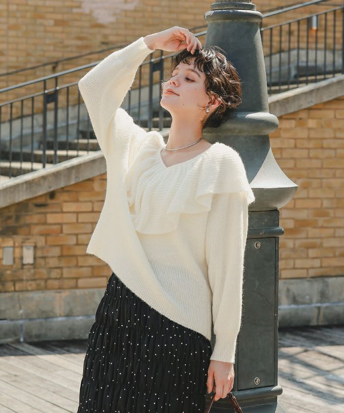 他の画像を見る ■【IGTV】 【titivate】【期間限定★SALE】 ティアードフリルモヘアライクローゲージニットトップス 通常価格 ¥ 5,489 価格 ¥ 2,195 税込 お気に入りに登録する