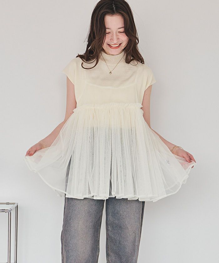 他の画像を見る ■【IGTV】 【titivate】【期間限定★SALE】 ペプラムギャザーチュールトップス【メール便可/100】 通常価格 ¥ 3,289 価格 ¥ 986 税込 お気に入りに登録する