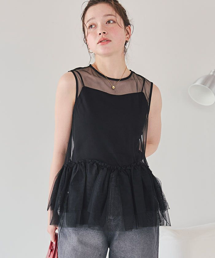 ・シンプルコーデにプラスするだけで映えるチュールトップス。