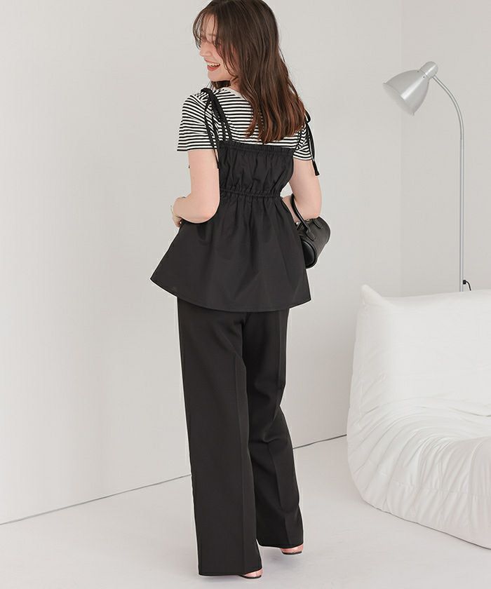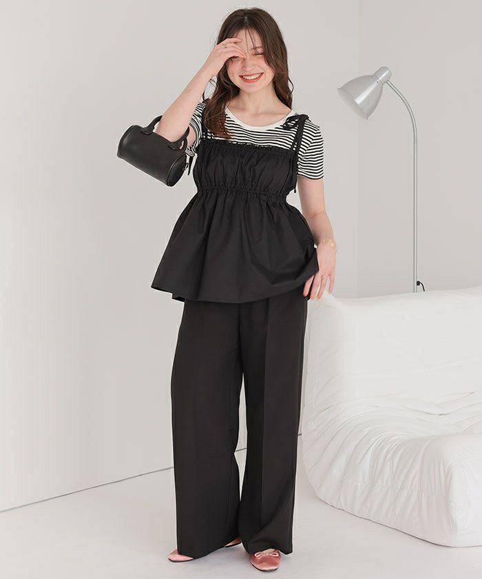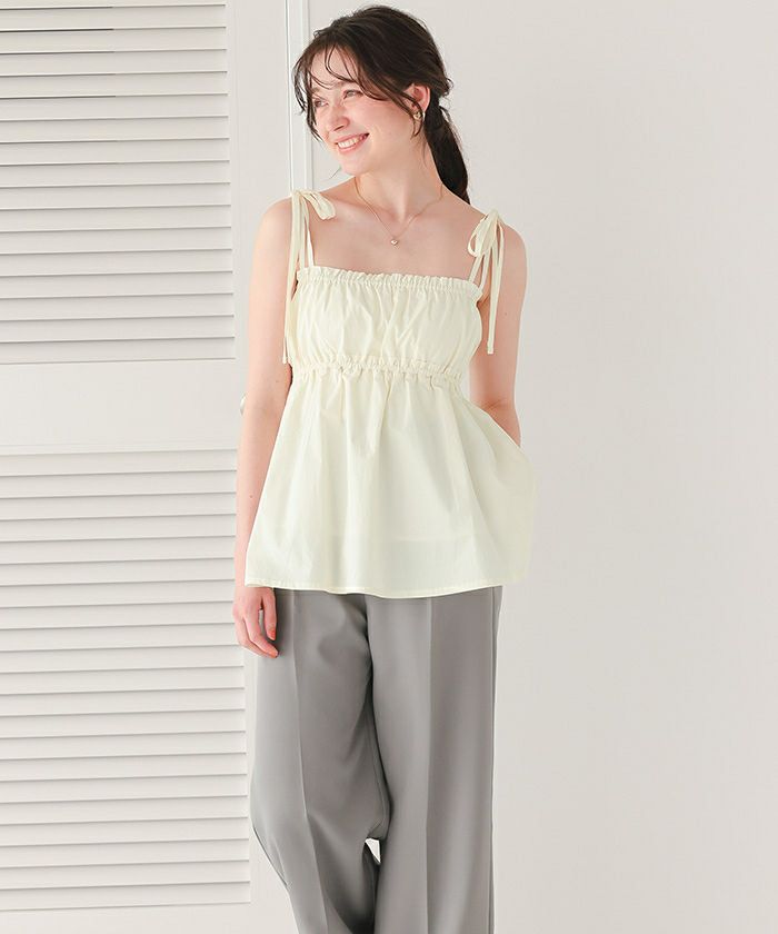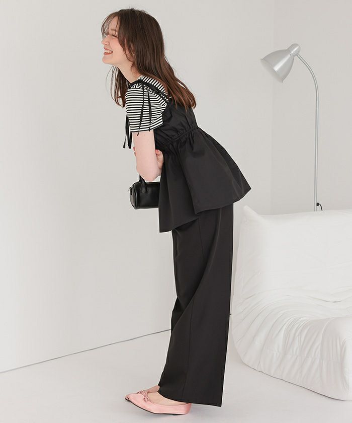・ふんわりと広がるギャザーが女性らしい印象を演出