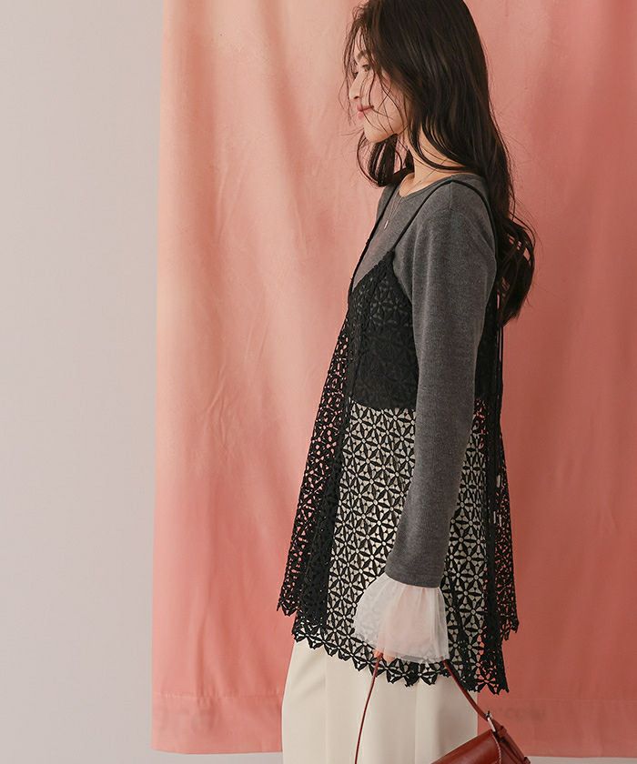 ・花柄レースを贅沢に使った、大人フェミニンなチュニックキャミソール