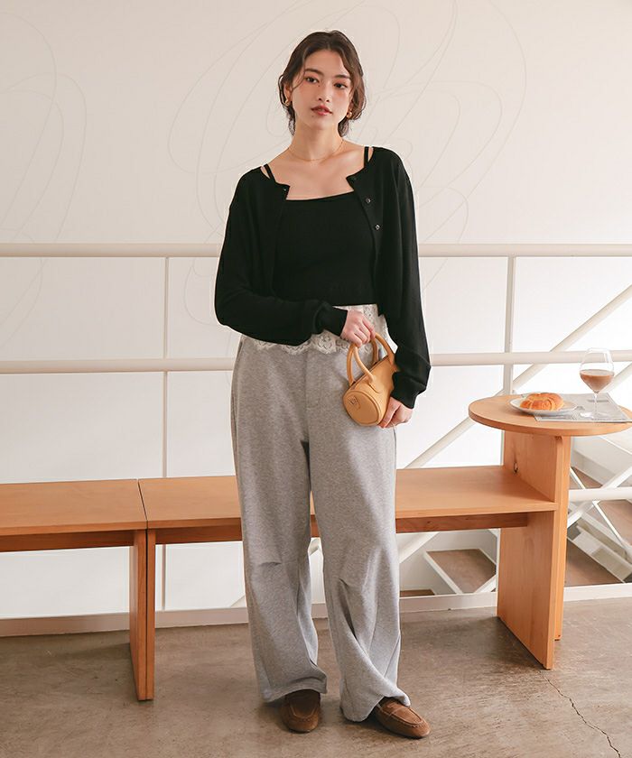 ・繊細なレースヘムが覗くキャミソール×程よく力の抜けたカーデのセットで、1枚で完成する旬のレイヤード感