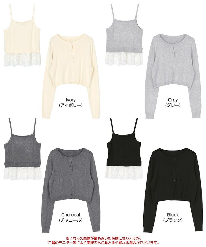 レースヘムキャミソール/カーディガンニットセット