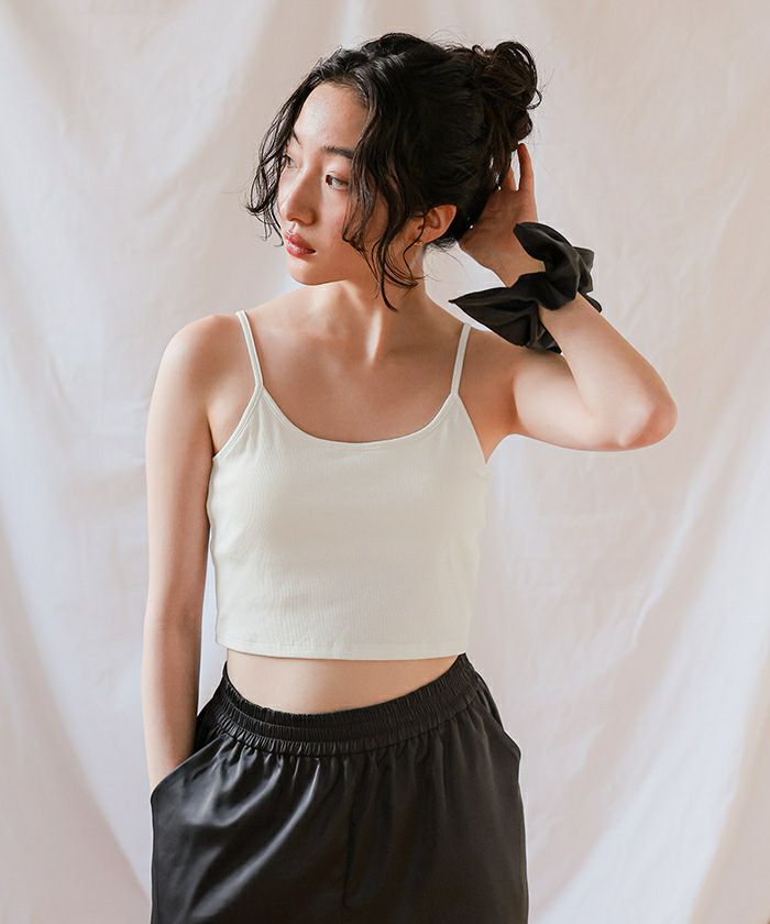 ・竹繊維生地を使用した、ひんやり心地よい接触冷感のあるカップ付きショート丈キャミソール
