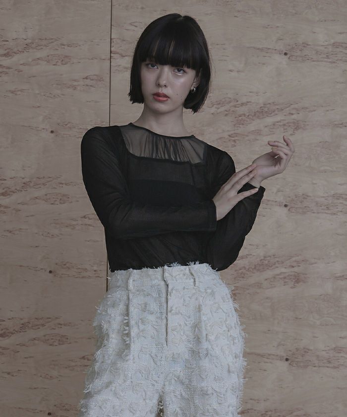他の画像を見る ■【miette】【期間限定★SALE】 シアー切替ベロアトップス【miette ミエット】【メール便可/100】 通常価格 ¥ 4,389 価格 ¥ 2,194 税込 お気に入りに登録する
