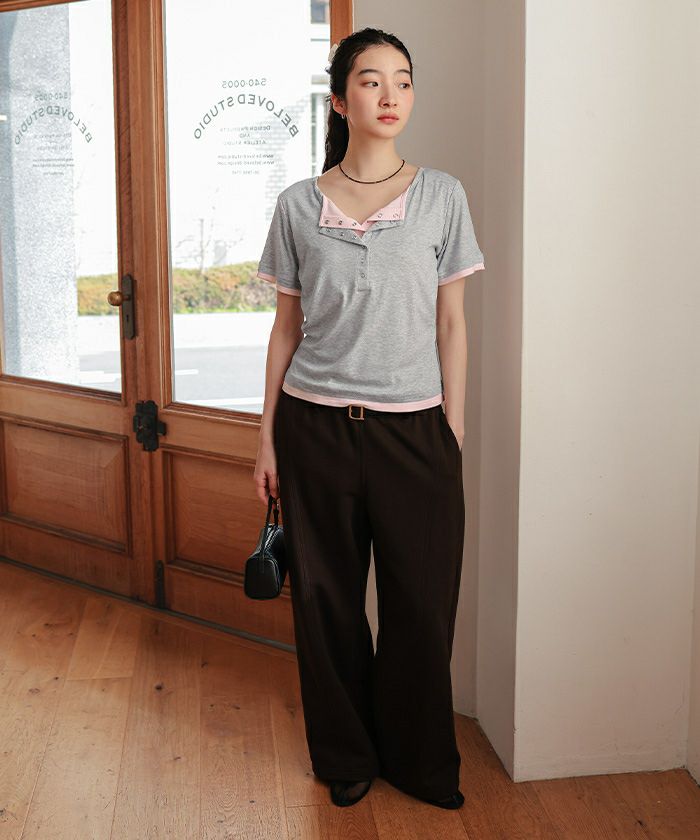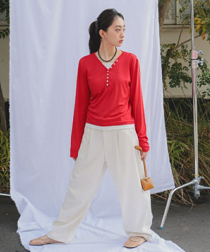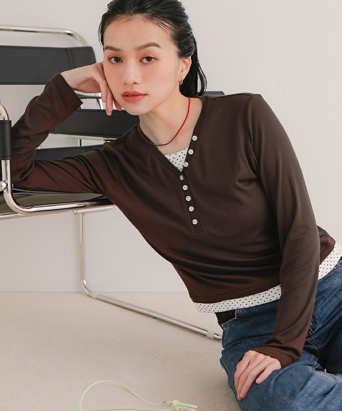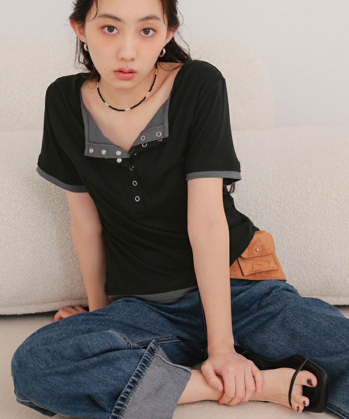 他の画像を見る ■【miette】【期間限定★SALE】 レイヤード風Vネックヘンリートップス【miette ミエット】【メール便可/100】 通常価格 ¥ 4,389 価格 ¥ 3,511 税込 お気に入りに登録する