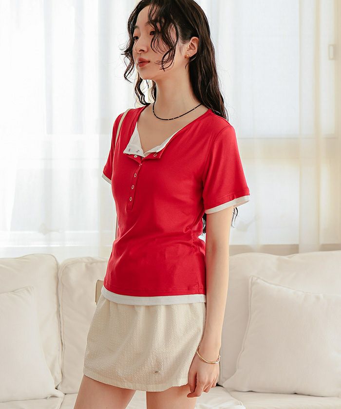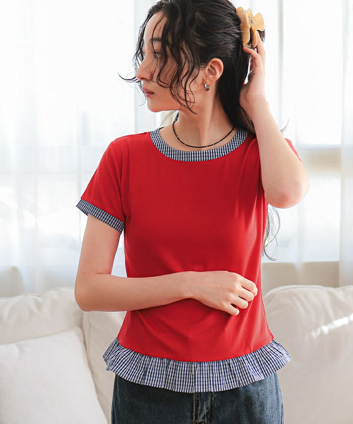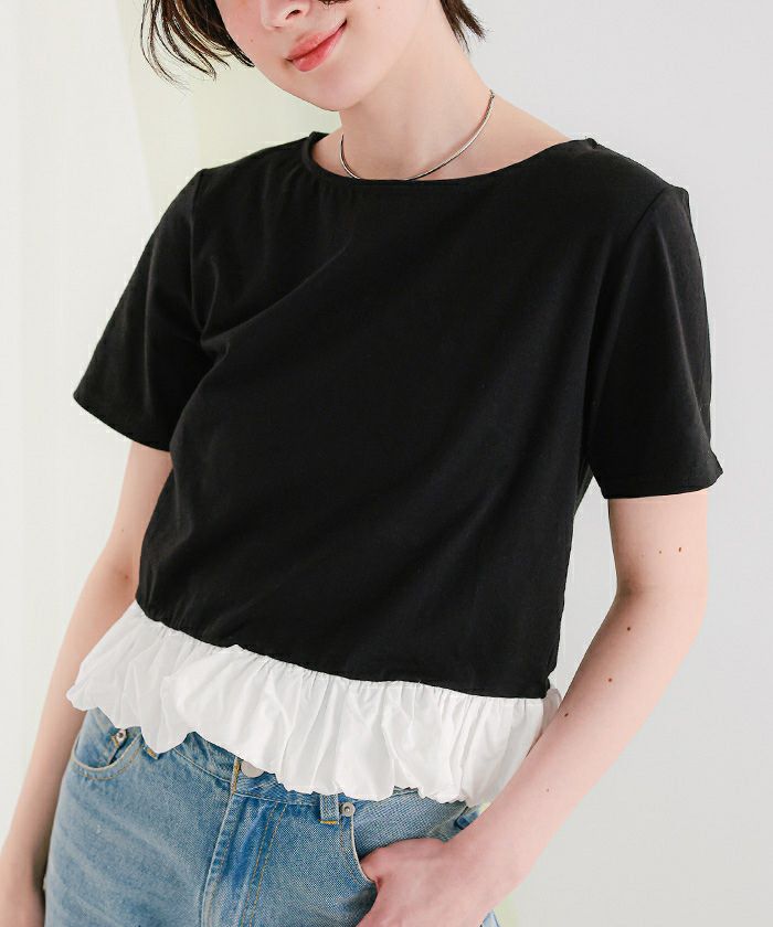 他の画像を見る 【新作★期間限定20%OFF★4日11時カラ】【miette】 異素材ドッキング半袖トップス【miette ミエット】【メール便可/100】 通常価格 ¥ 4,389 価格 ¥ 3,511 税込 販売期間 2026/03/04 11:00 〜 2026/03/11 10:59 お気に入りに登録する