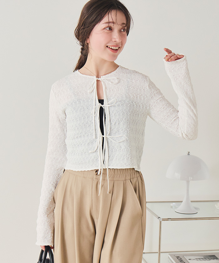 他の画像を見る 【いつきさん25S/Sコラボ】【IGTV】 【titivate】【期間限定★SALE】 リボンデザインジャガードトップス【メール便可/100】 通常価格 ¥ 3,949 価格 ¥ 1,974 税込 お気に入りに登録する