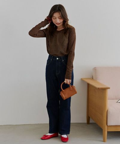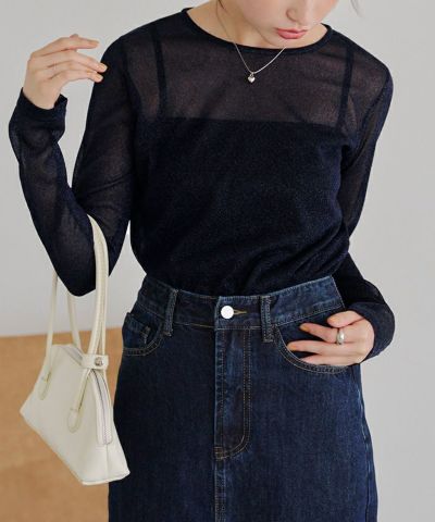 ・トレンド感のあるラメ素材が可愛い長袖トップス。