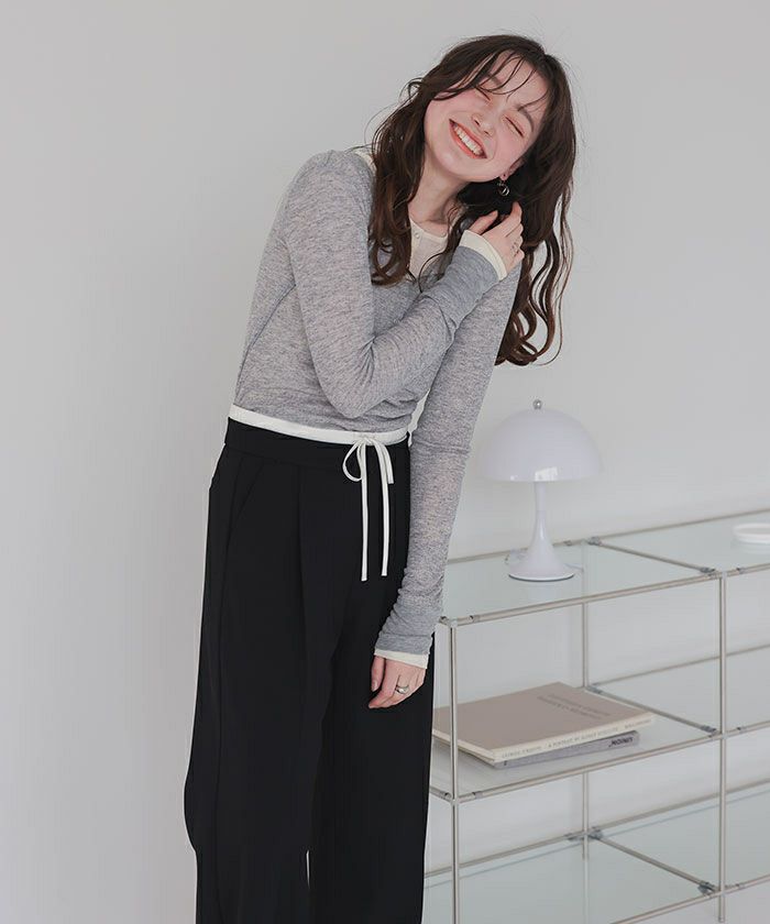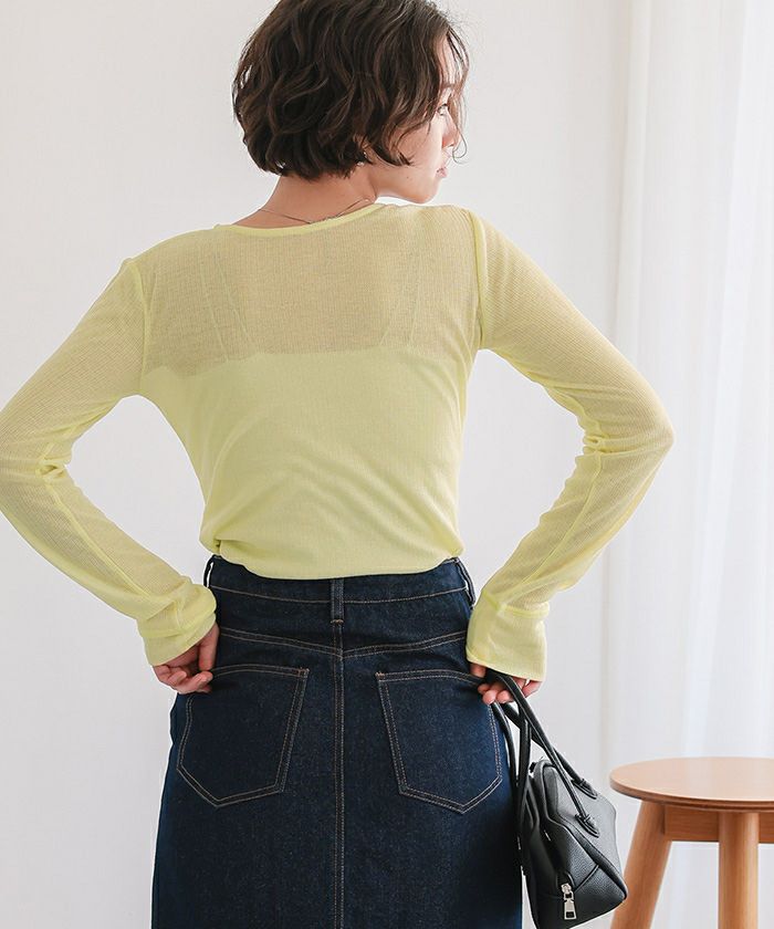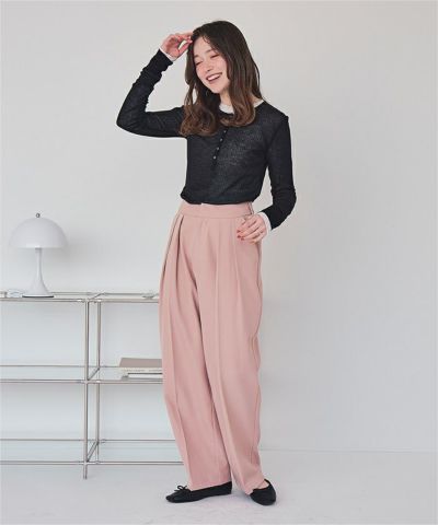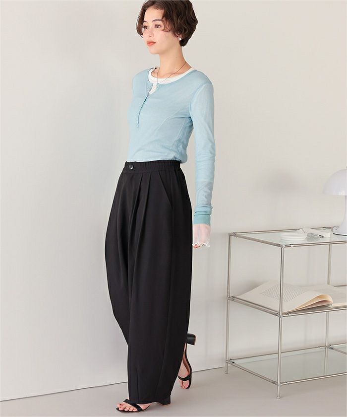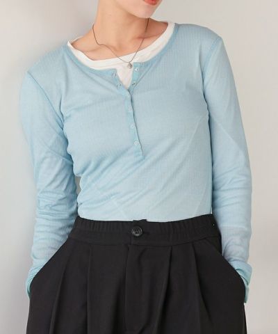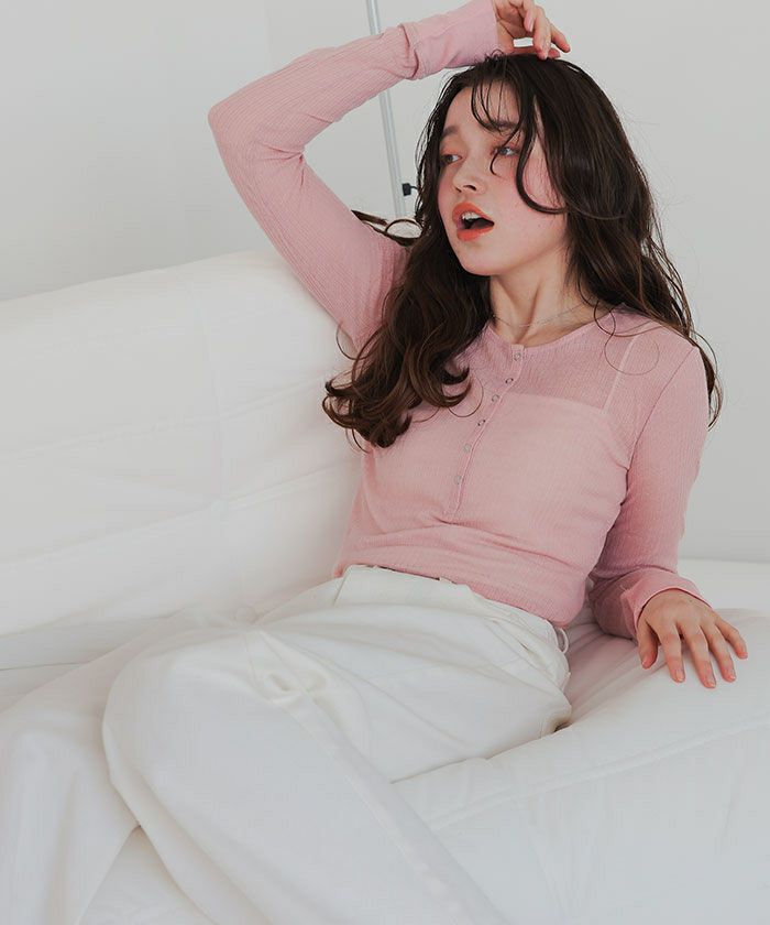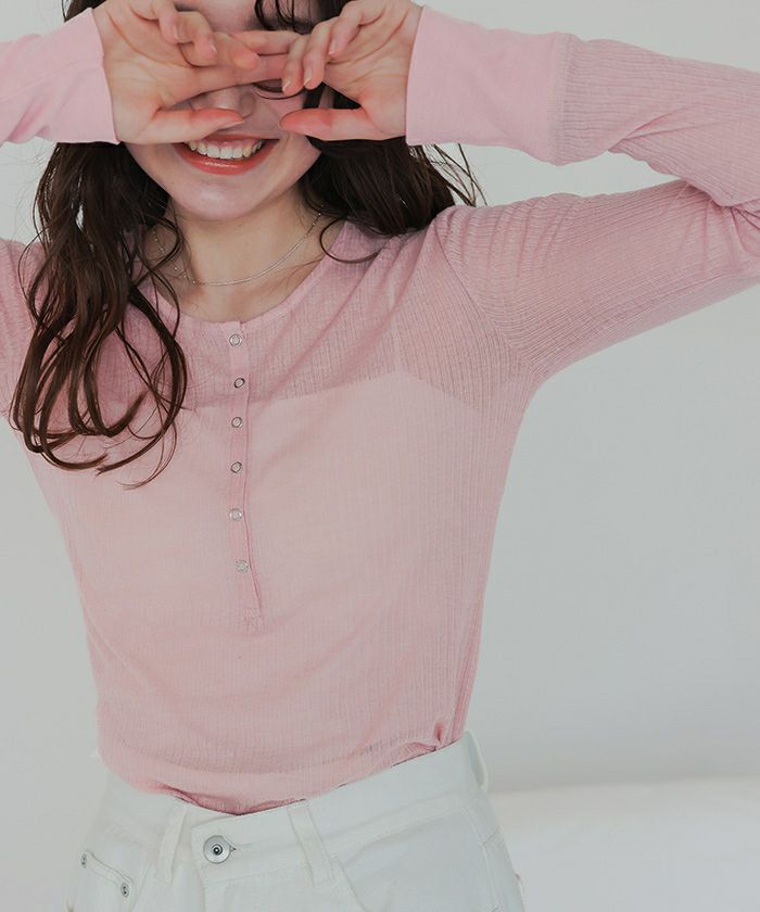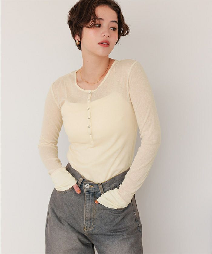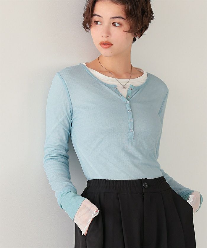 ・シアー感が可愛いヘンリーネックトップス。