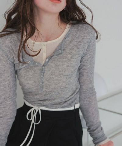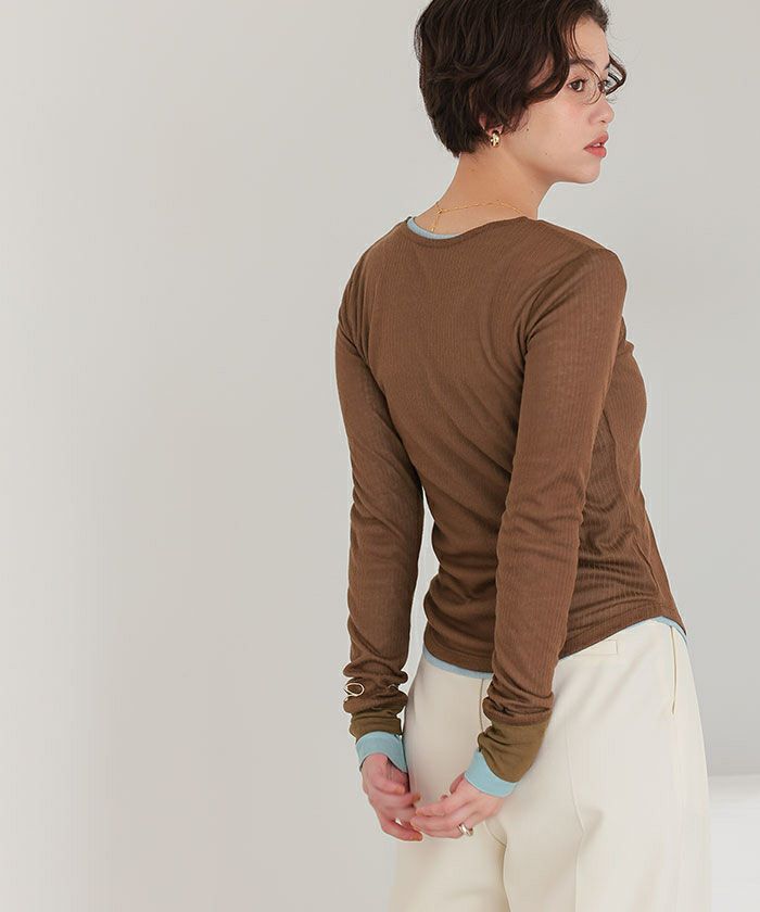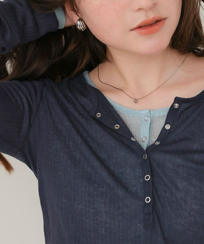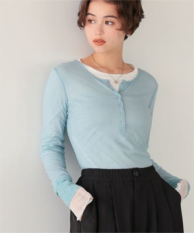 スッキリ着られるヘンリーネックトップス! シアートップスを重ね着して レイアードすると 凄く可愛いたです! 色違いが欲しくなりました!