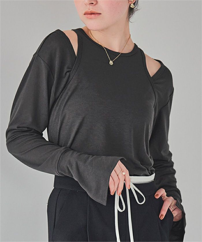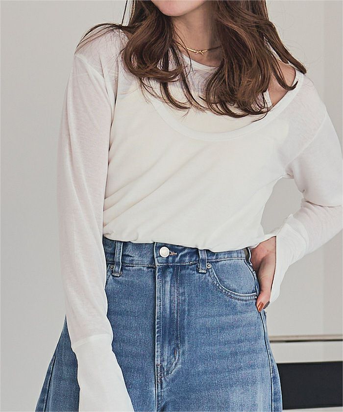 Uネック/タンクレイヤードトップス【メール便可/100】