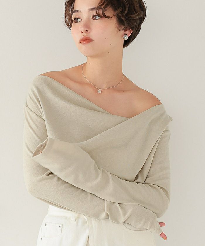 オフショルダーロングスリーブTシャツ【メール便可/100】