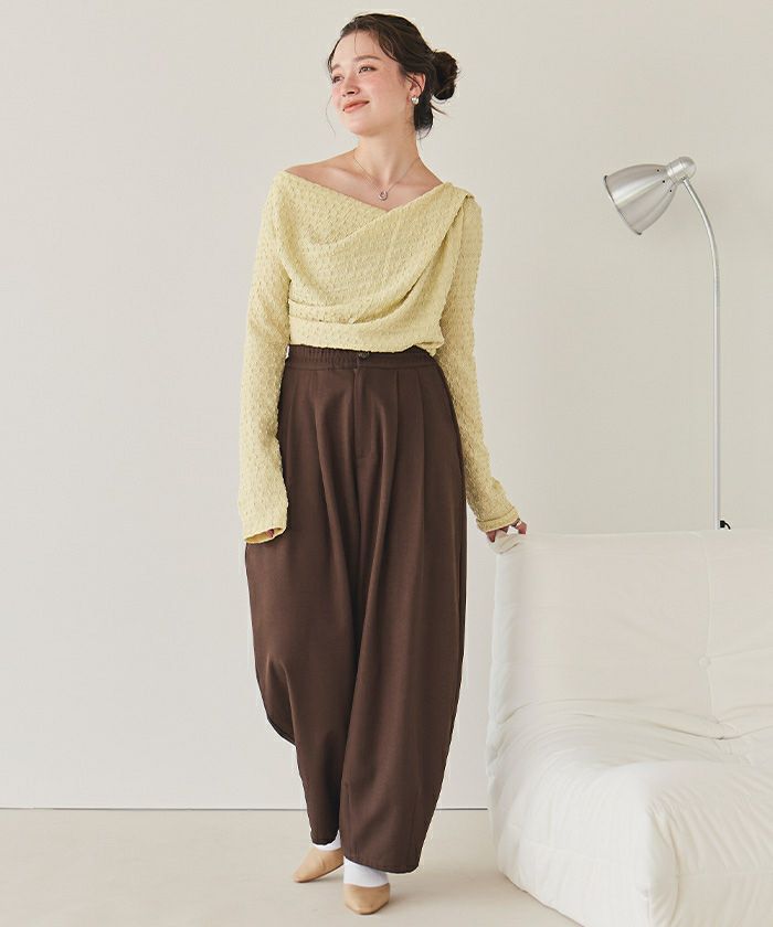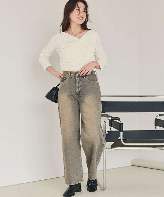 骨格ウェーブ身長161cm,45kgでMサイズを税込1316円の時に購入しました。これは絶対白黒イロチで買うべきです!素材もザラザラせず柔らかく夏以外着れます!肩出しも出来るし何通りにもなります!グレーのフレアワイドデニムに合わせて着ています!ピンク再入荷あれば絶対買います笑