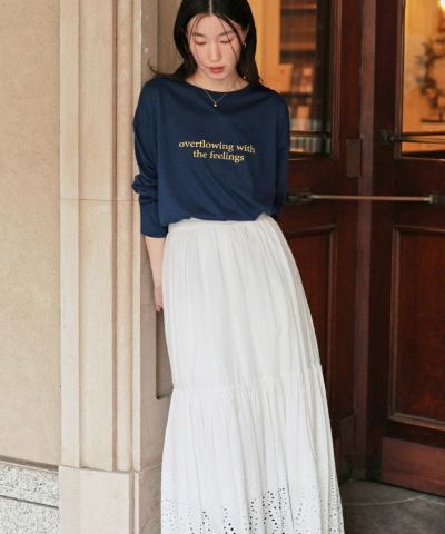 ・シンプルながらも抜け感を演出してくれるプリントロングTシャツ