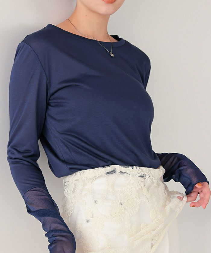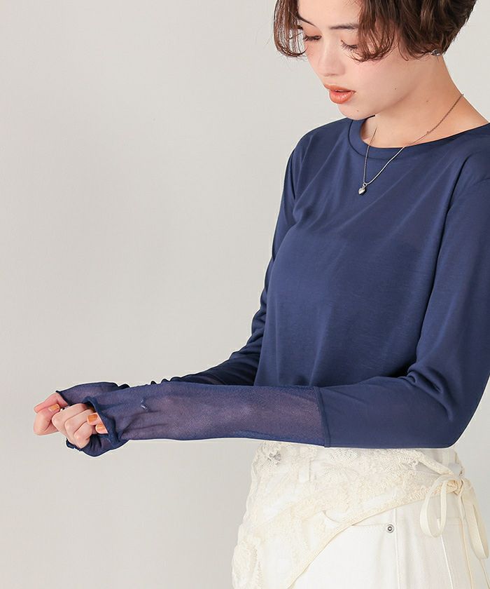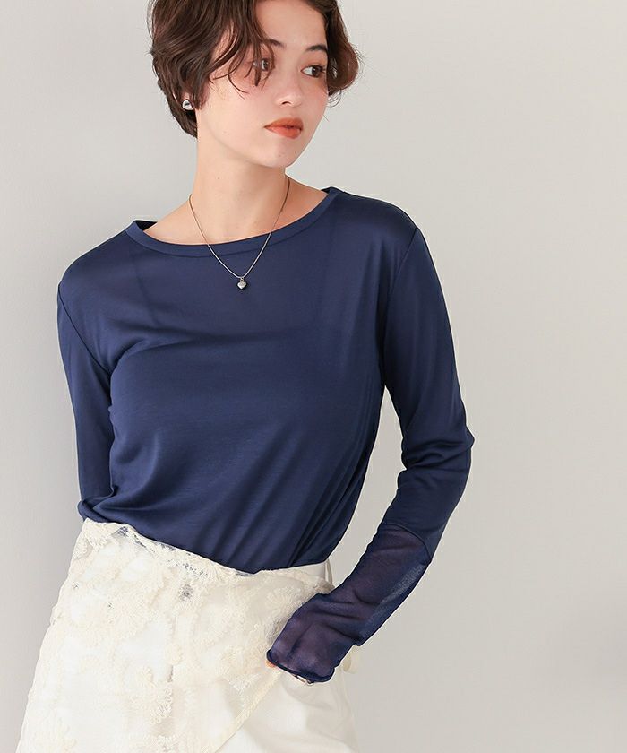 ・身頃部分は柔らかく薄めの素材、袖部分はラメ感のあるシアー素材を使用