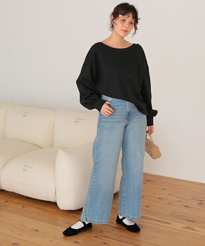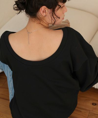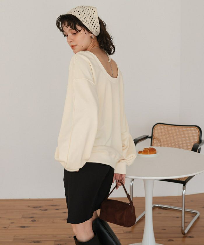 ・一見ベーシックなスウェットトップスですが、バックが大きく開いており抜け感がある