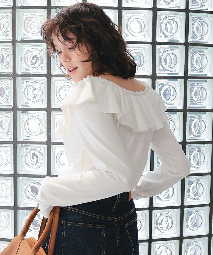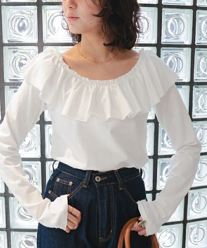 ・顔まわりを華やかに見せる広めの襟ぐりと、たっぷりフリルが作る“柔らかいアクセント”