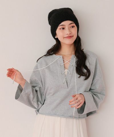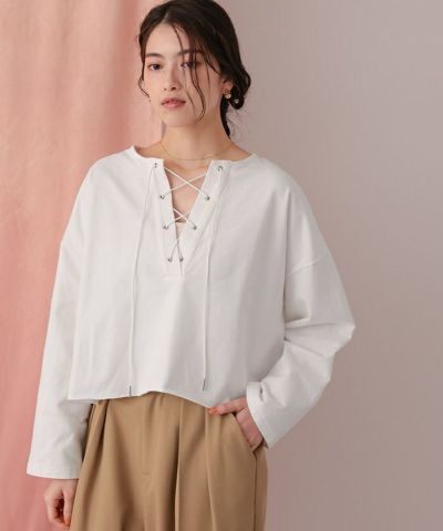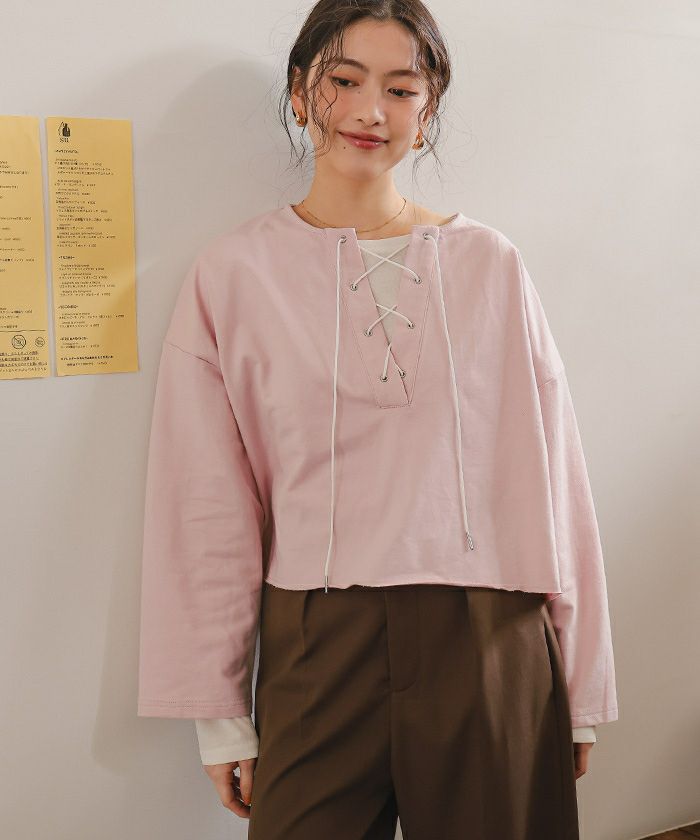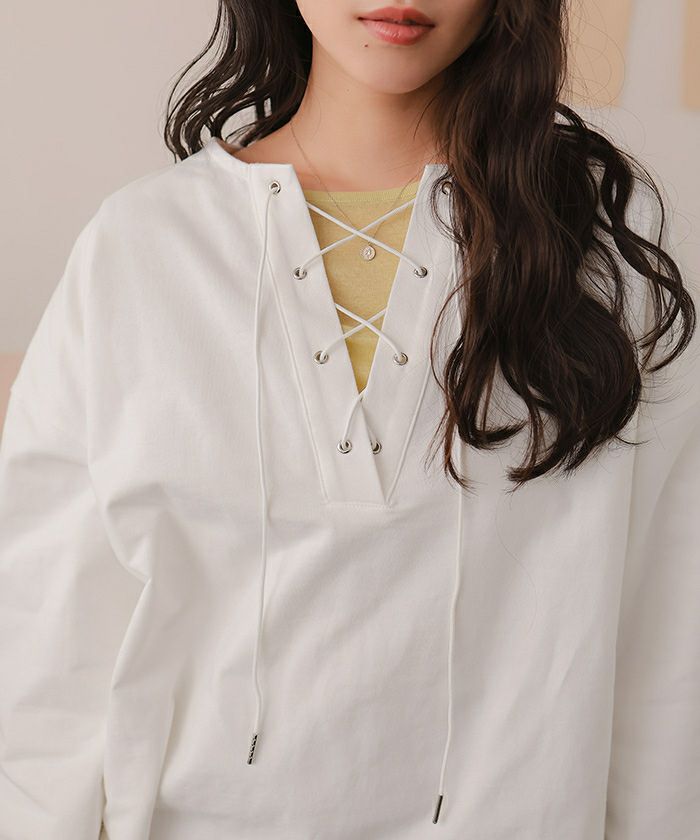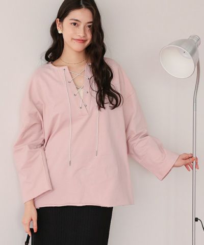 レースアップデザインプルオーバー