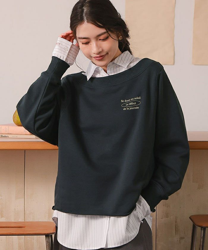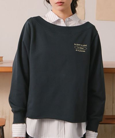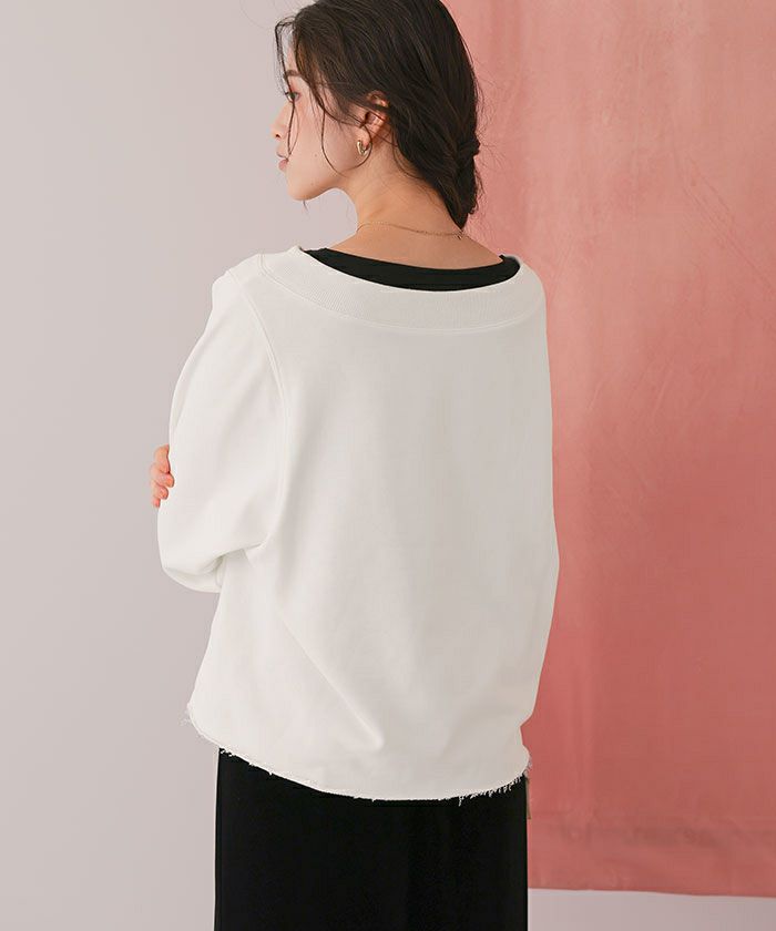 ・広めのボートネックとしても、肩を落としてワンショル・オフショルでも着用できるマルチな襟デザイン