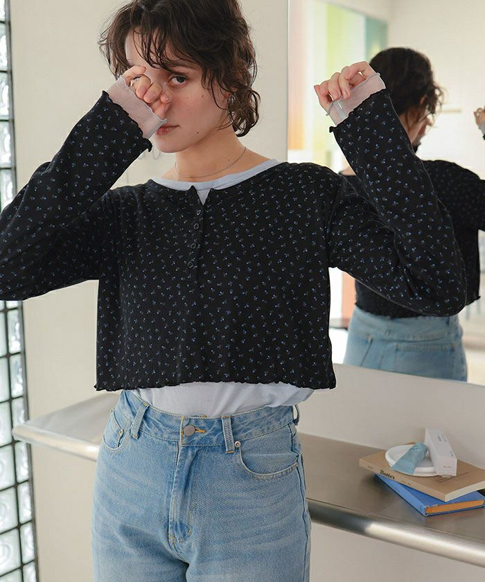 コンパクトヘンリーネックロングスリーブトップス