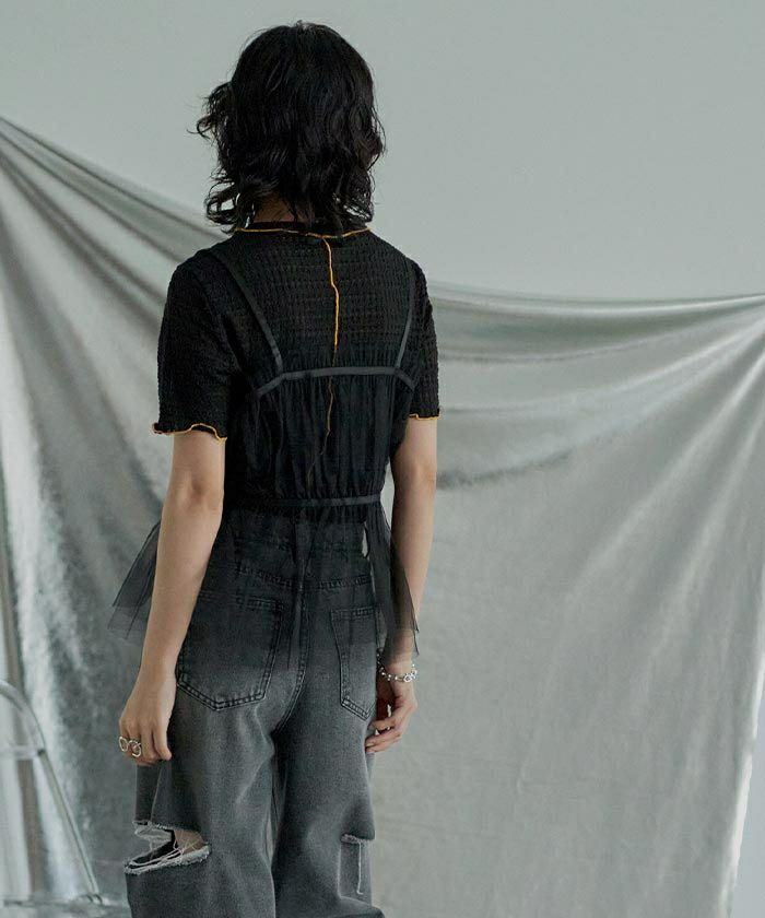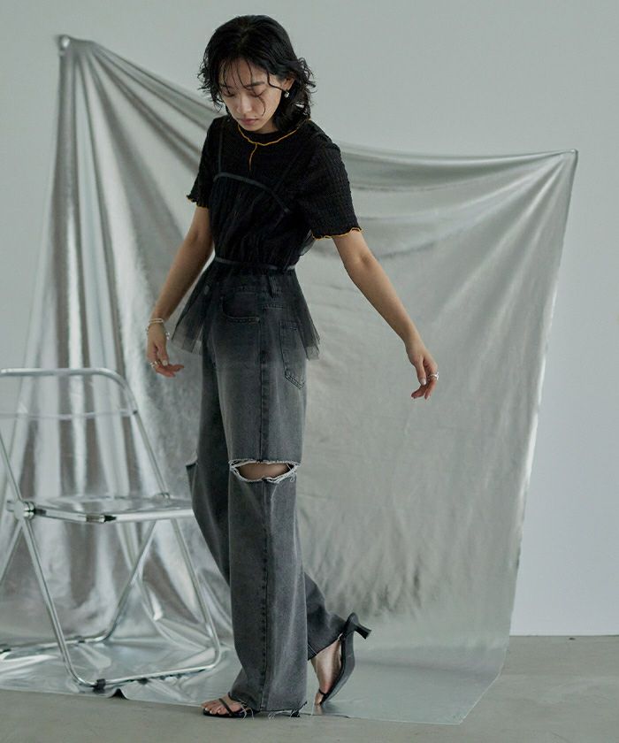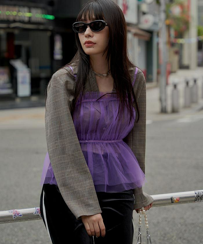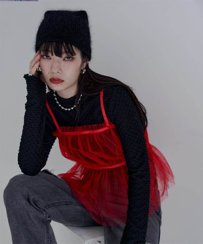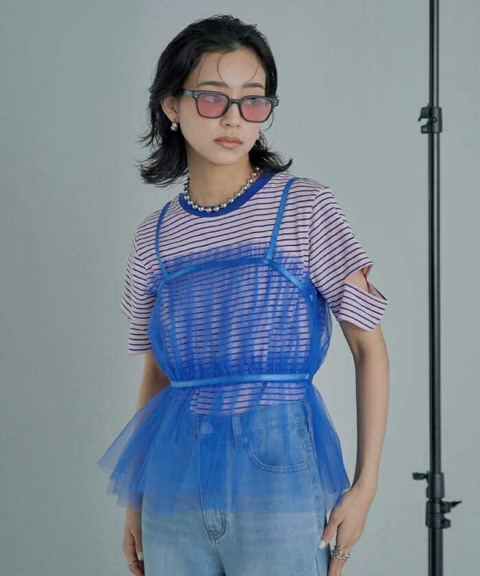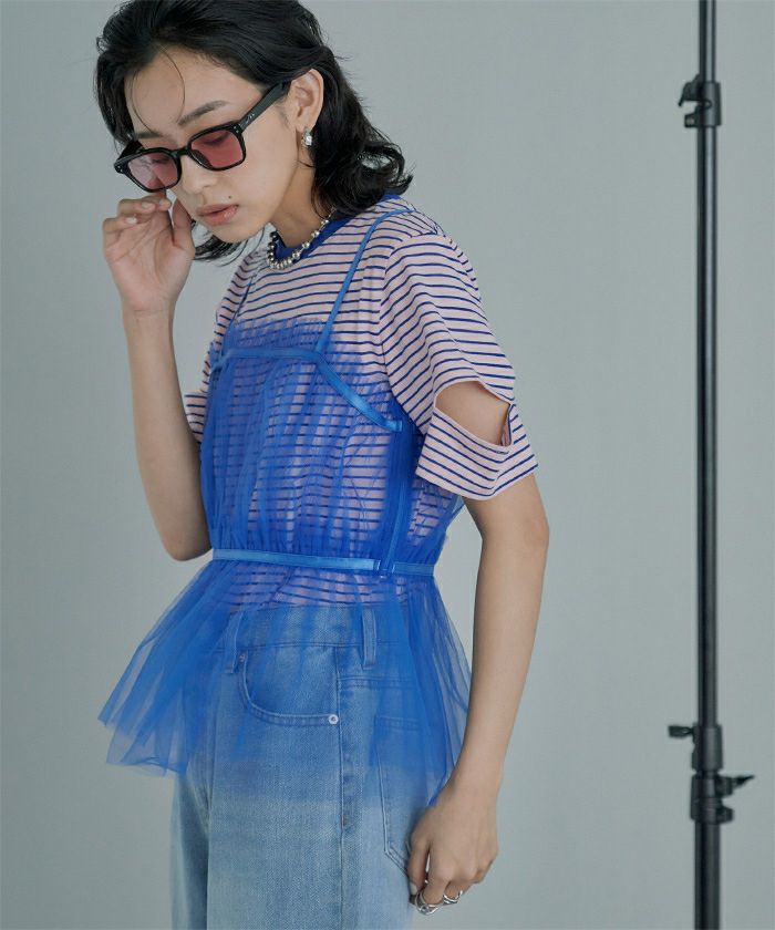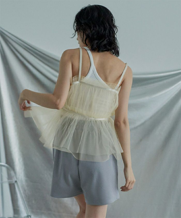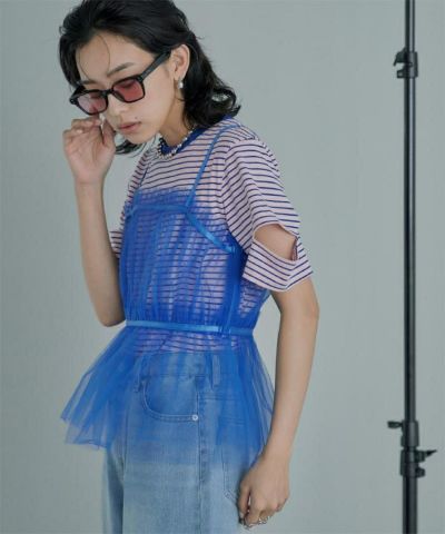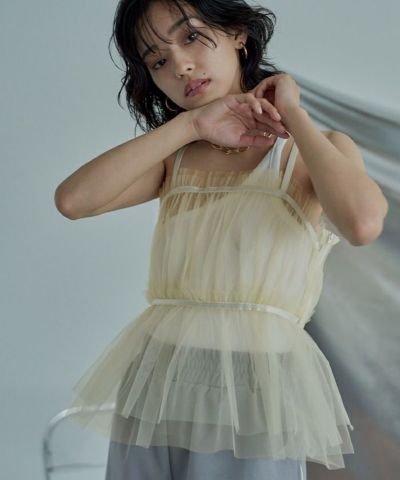 ・トレンド感のあるチュールビスチェ。