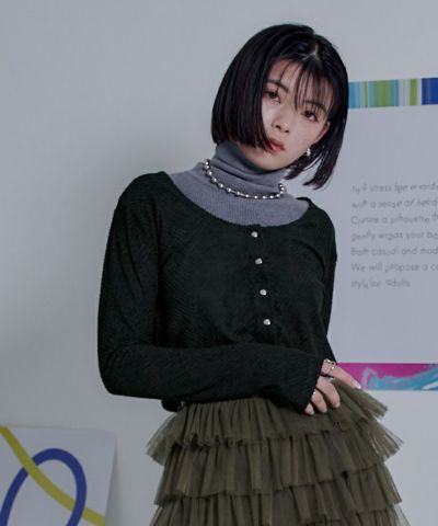 パイルジャガードUネックショートトップス【miette ミエット】