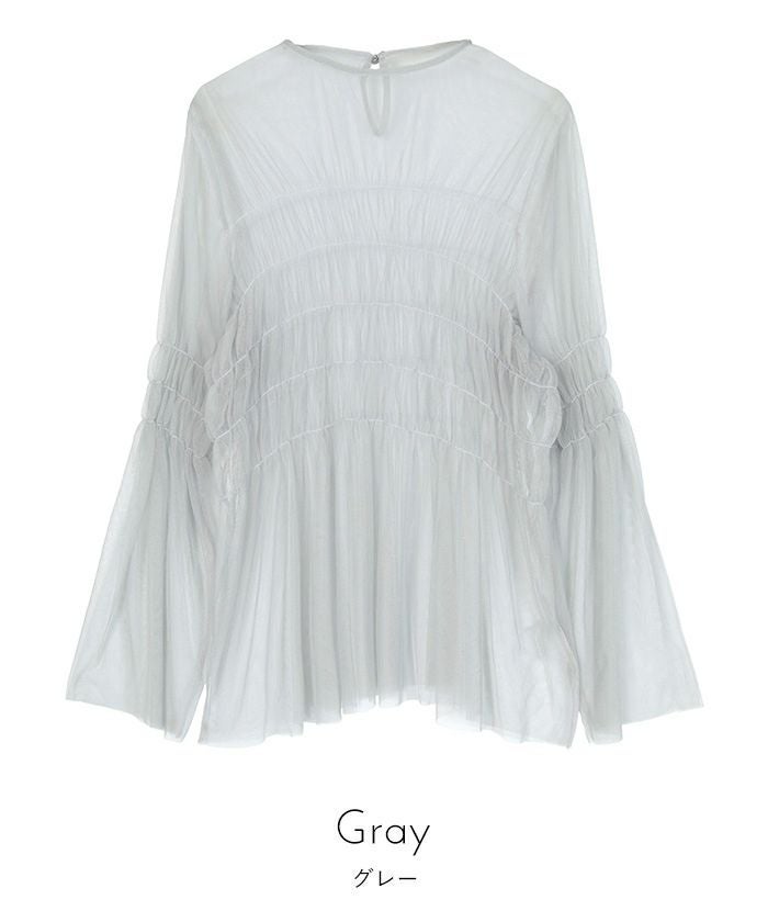 ・シャーリングたっぷりのデザインが可愛いチュールトップス。